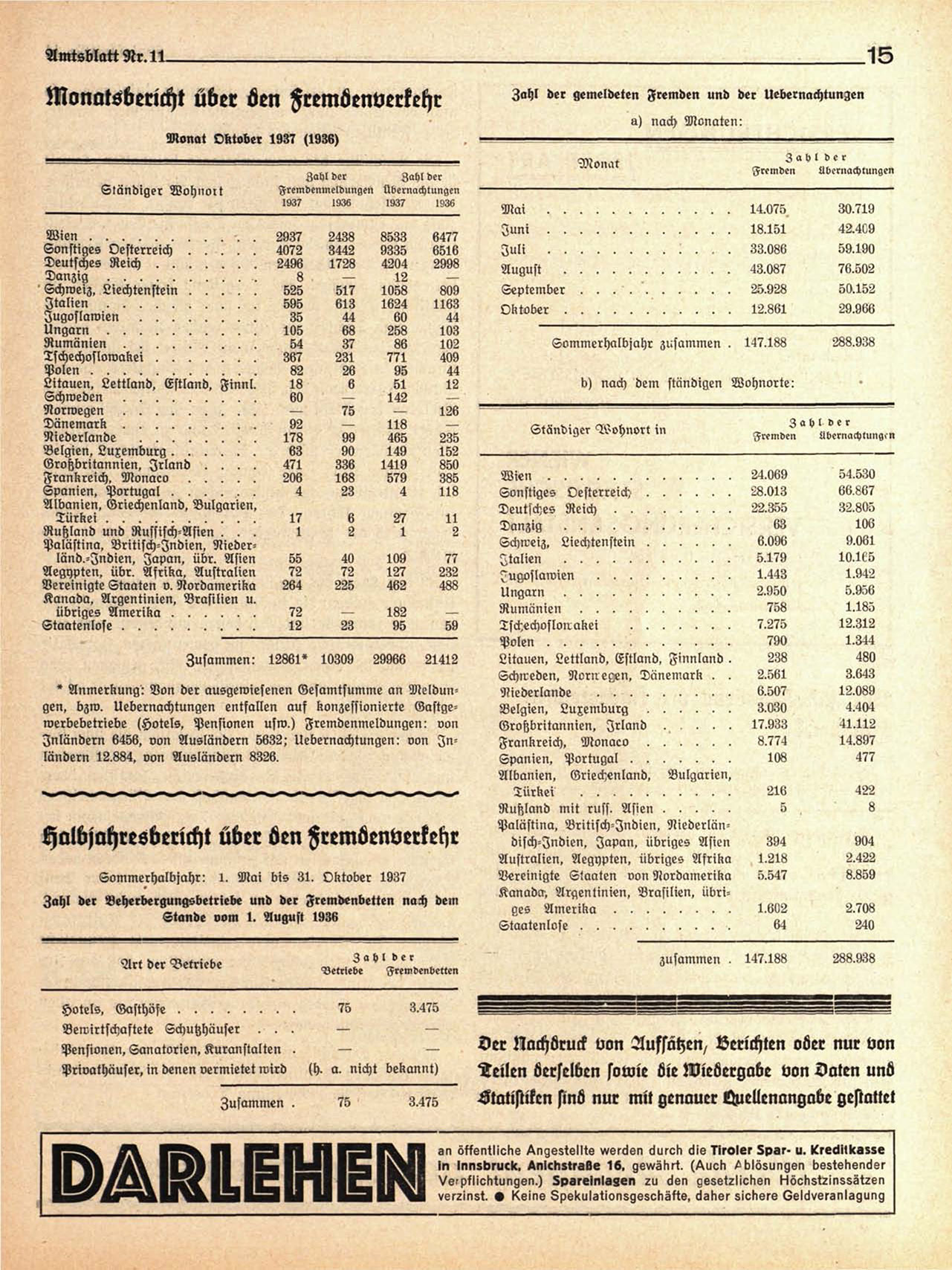 Zahl der gemeldeten Fremden und der Uebernachtungen