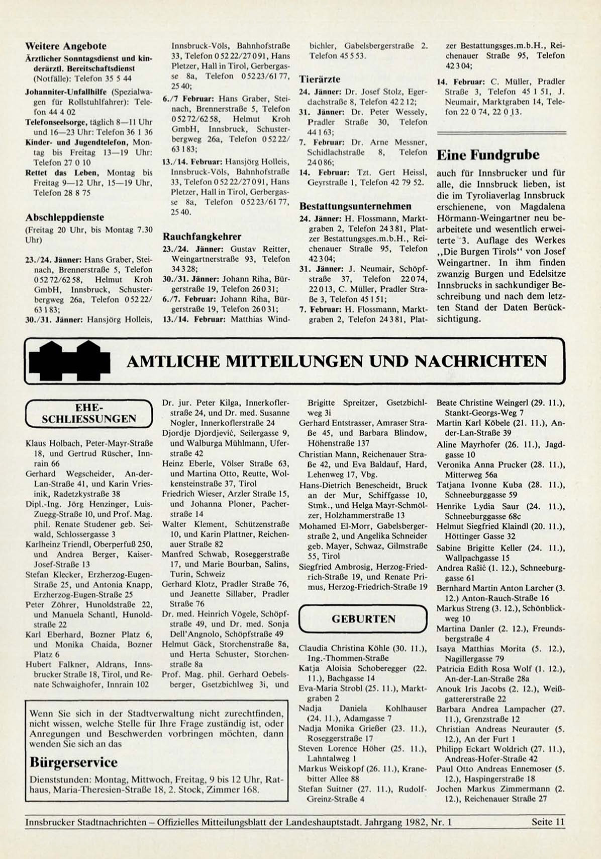 Innsbrucker Stadtnachrichten - Offizielles Mitteilungsblatt der Landeshauptstadt. Jahrgang 1MS2,