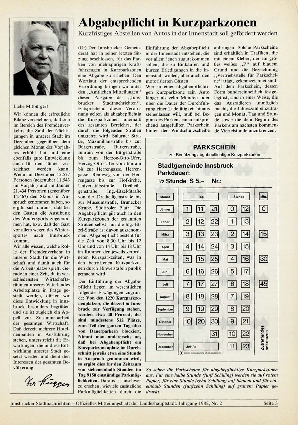 Papier, für eine Stunde (zehn Schilling) auf blauem und für eineinhalb Stunden (fünfzehn Schilling) auf grüne/n Papier gedruckt.