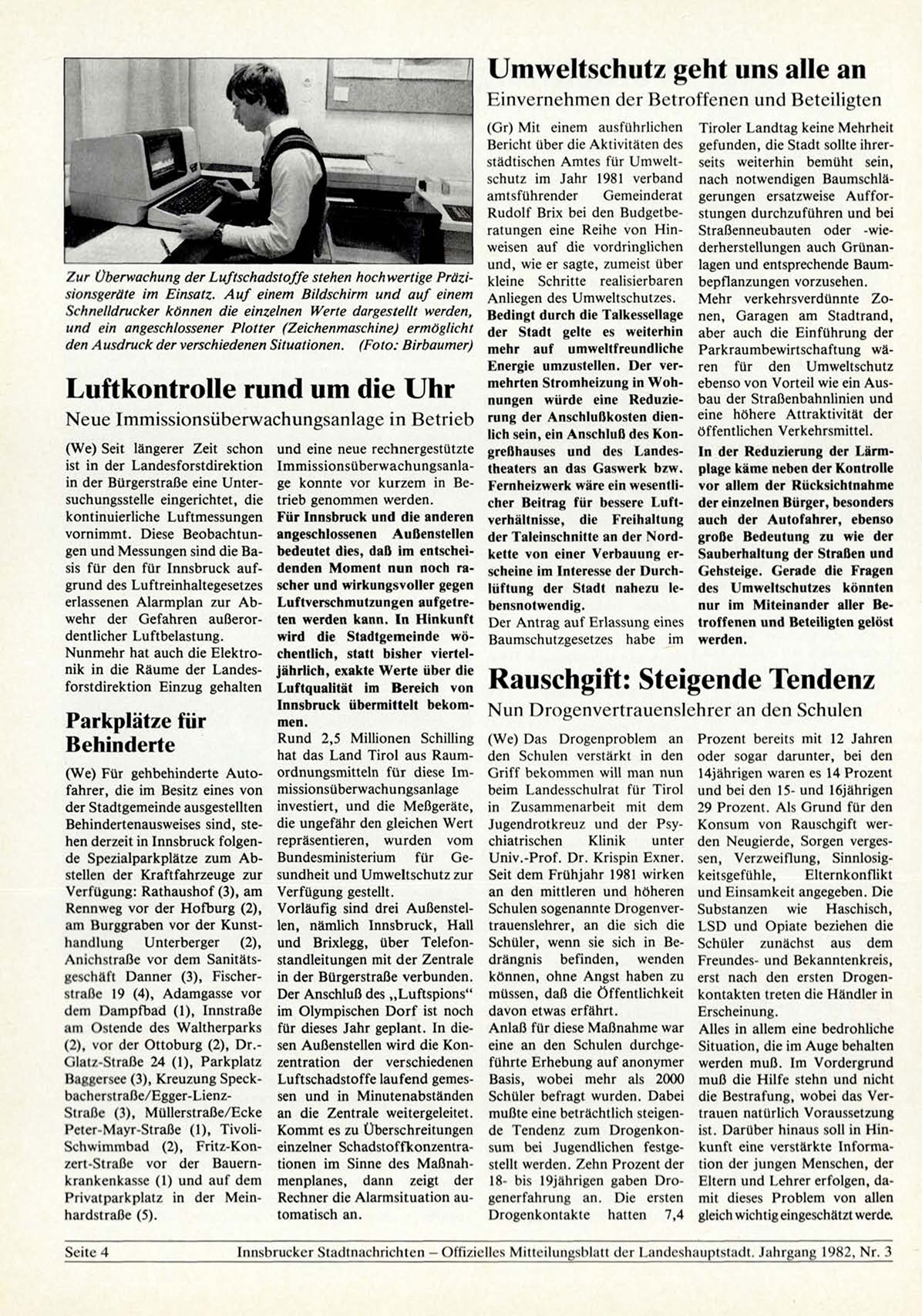 Innsbrucker Stadtnachrichten - Offizielles Mitteilungsblatt der Landeshauptstadt. Jahrgang 1982, N r . 3