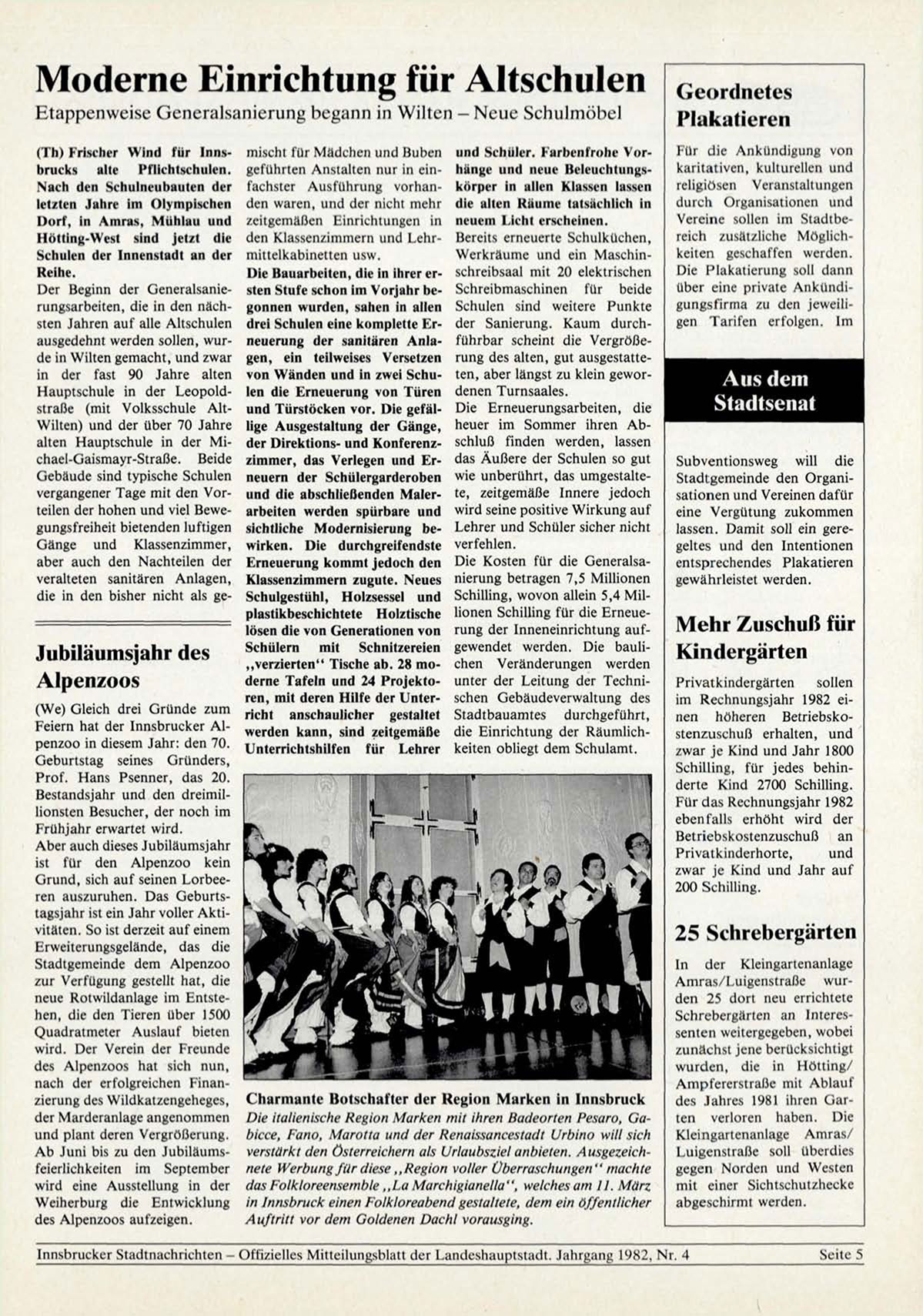 I n n s b r u c k e r S t a d t n a c h r i c h t e n - O f f i z i e l l e s M i t t e i l u n g s b l a t t d e r L a n d e s h a u p t s t a d t . J a h r g a n g 1982, N r . 4