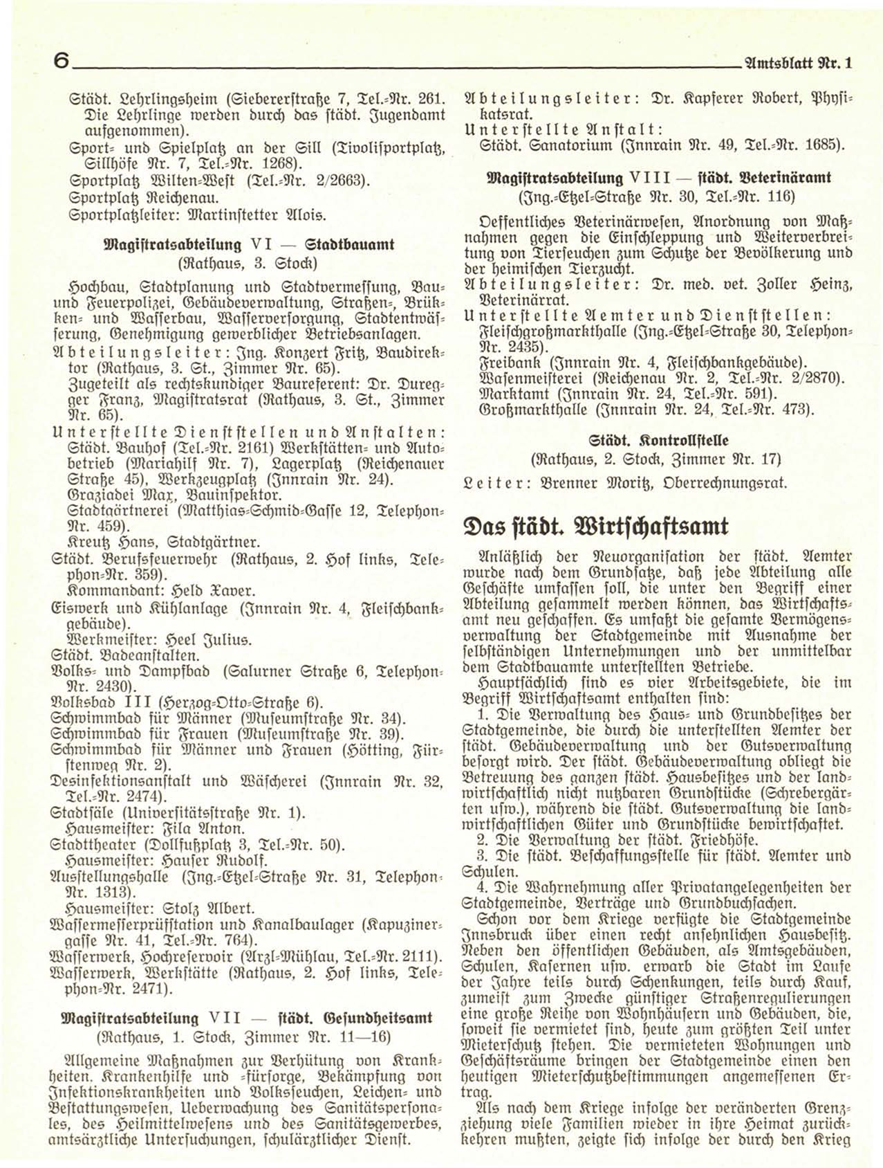 A b t e i l u n g s l e i t e r : Ing. Konzert Fritz, Baudirektor (Rathaus, 3. St., Zimmer Nr. 65).