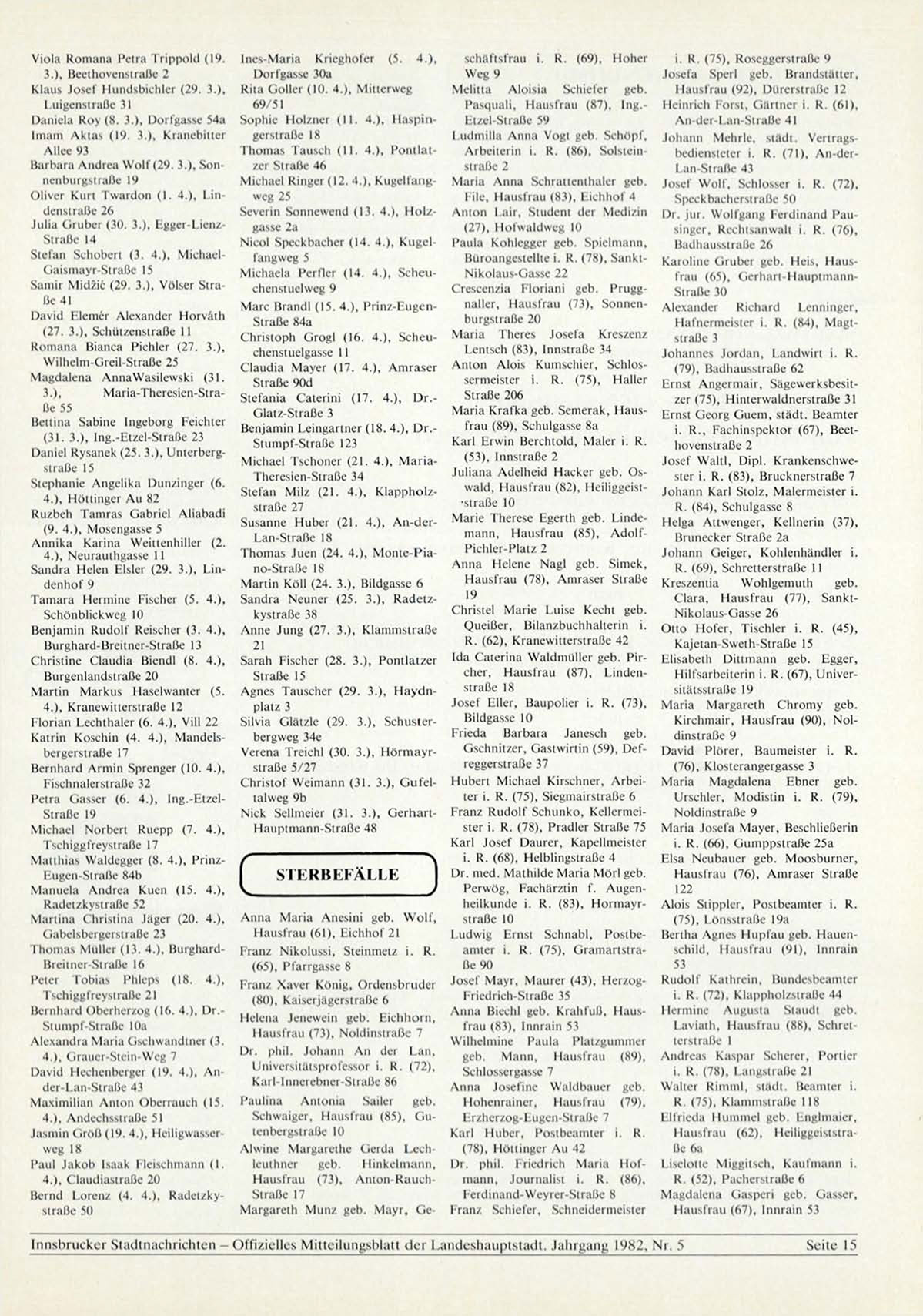 I n n s b r u e k e r S t a c l l n a c h r i c h t e n — O f f i z i e l l e s M i t t e i l u n g s b l a t t d e r L a n d e s h a u p t s t a d t . J a h r g a n g 1982, N r . 5