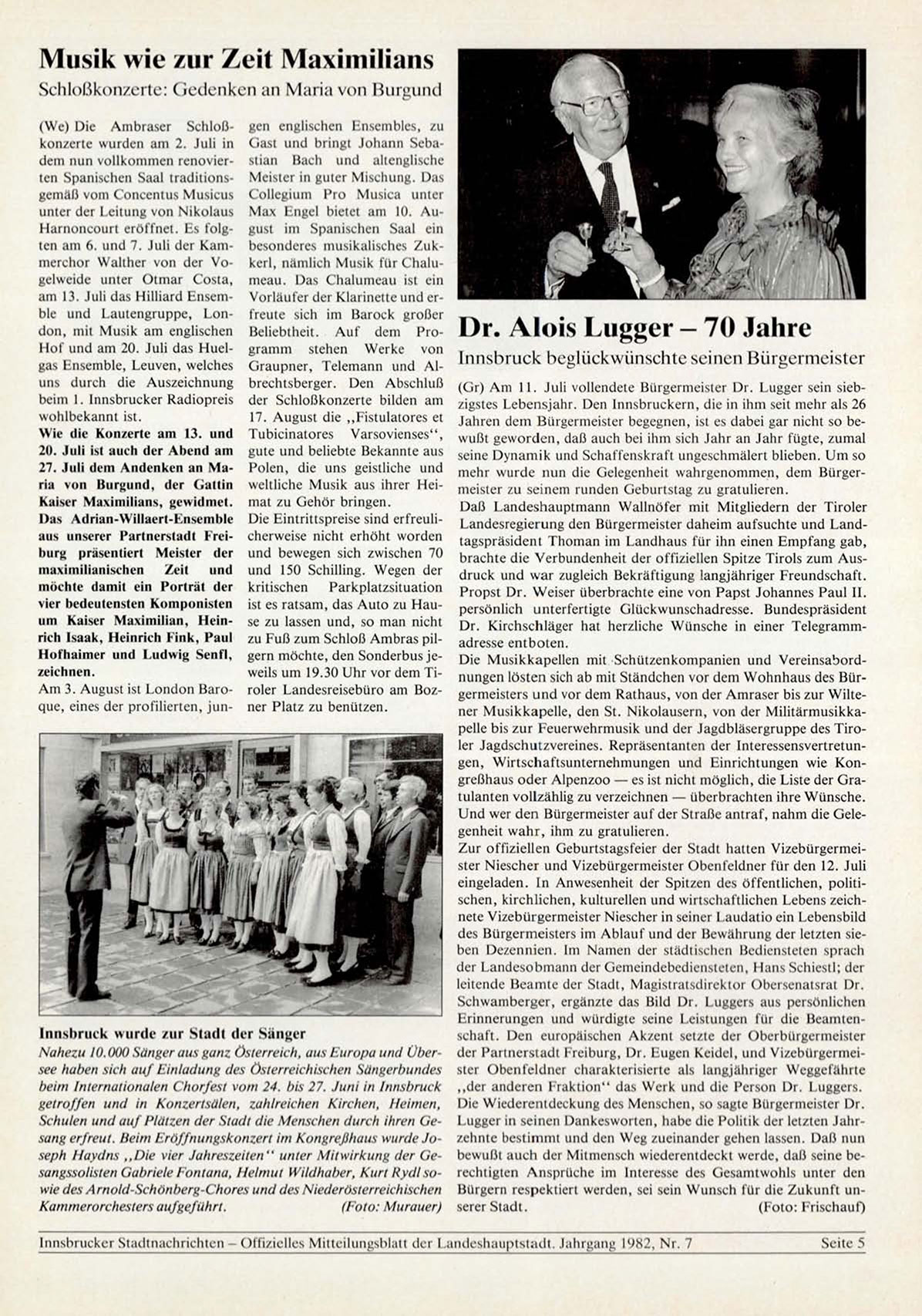 Z u r o f f i z i e l l e n G e b u r t s t a g s f e i e r der Stadt h a t t e n V i z e b ü r g e r m e i ster N i e s c h e r u n d V i z e b ü r g e r m e i s t e r O b e n f e l d n e r f ü r den 12. J u l i