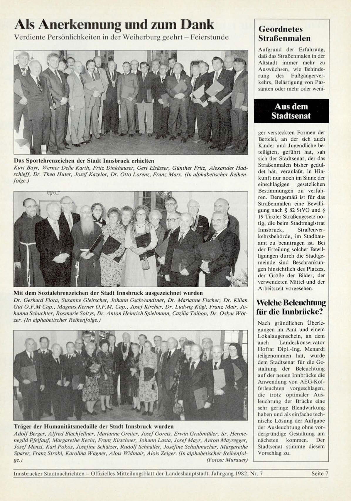 der Humanitätsmedaille der stadi Innsbruck wurden