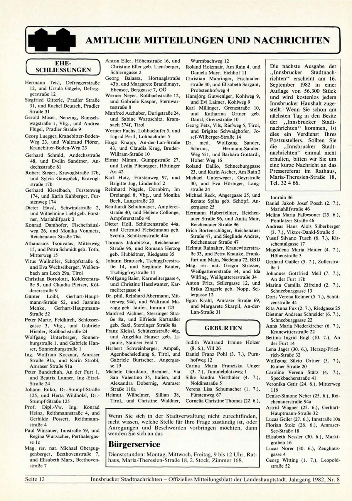[nnsbrucker Stadtnachrichten - Offizielles Mitteilungsblatt der Landeshauptstadt. Jahrgang 1982, Nr. 8