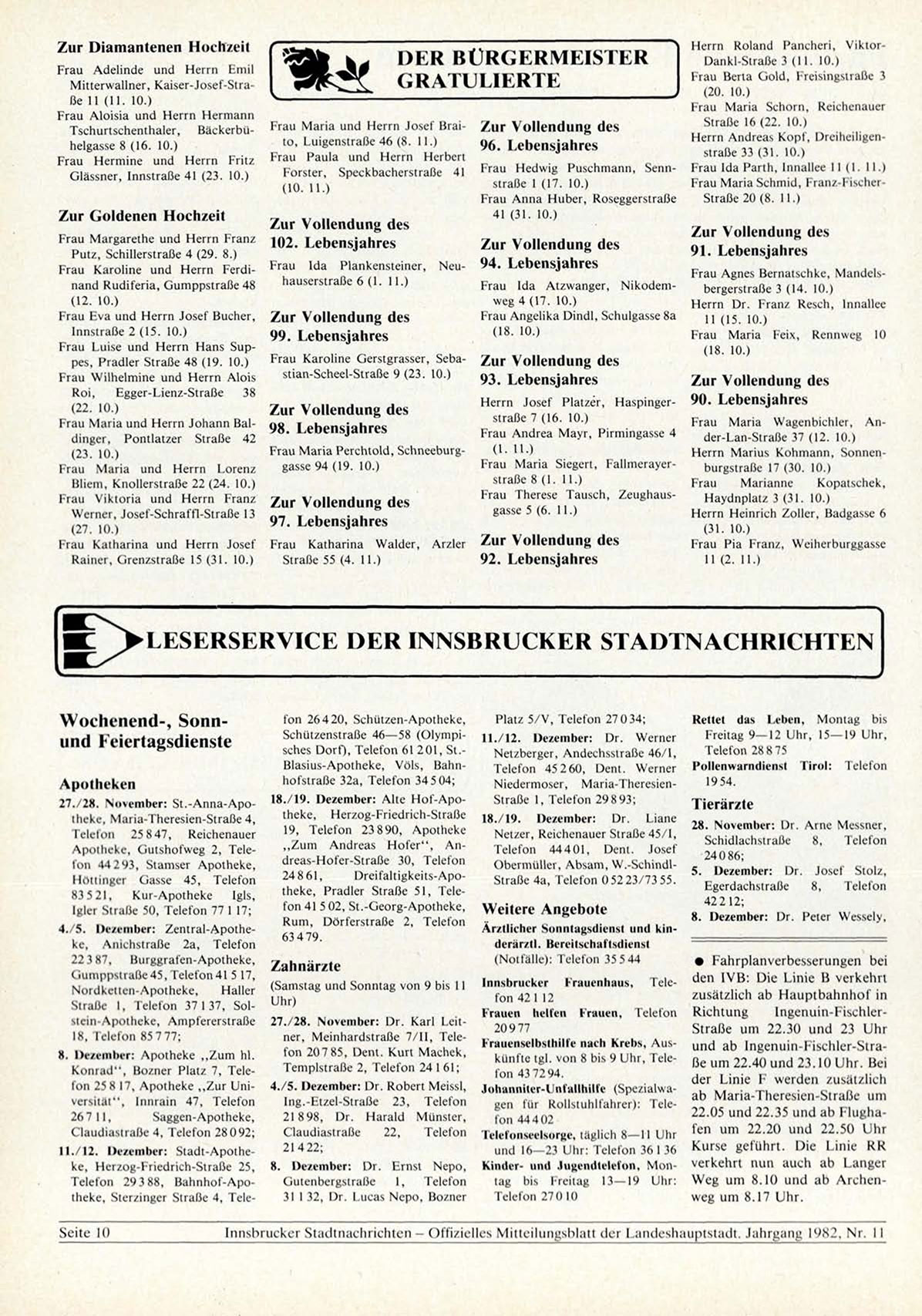 I n n s b r u c k e r S t a d t n a c h r i c h t e n - O f f i z i e l l e s M i t t e i l u n g s b l a t t der L a n d e s h a u p t s t a d t . J a h r g a n g 1982, N r . 11