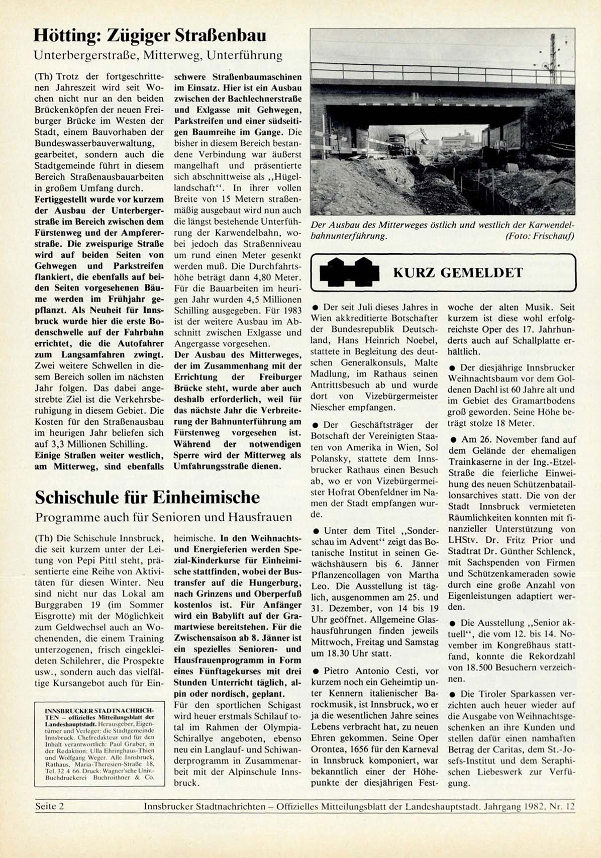 Innsbrucker Stadtnachrichten - Offizielles Mitteilungsblatt der Landeshauptstadt. Jahrgang 1982, Nr. 12