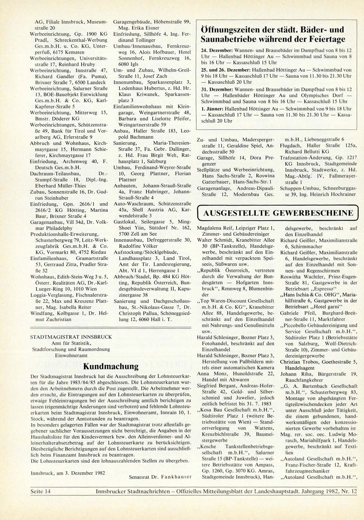 [nnsbrucker Stadtnachrichten - O f f i z i e l l e s M i t t e i l u n g s b l a t t d e r Landeshauptstadt. Jahrgang 1982, N r . 12