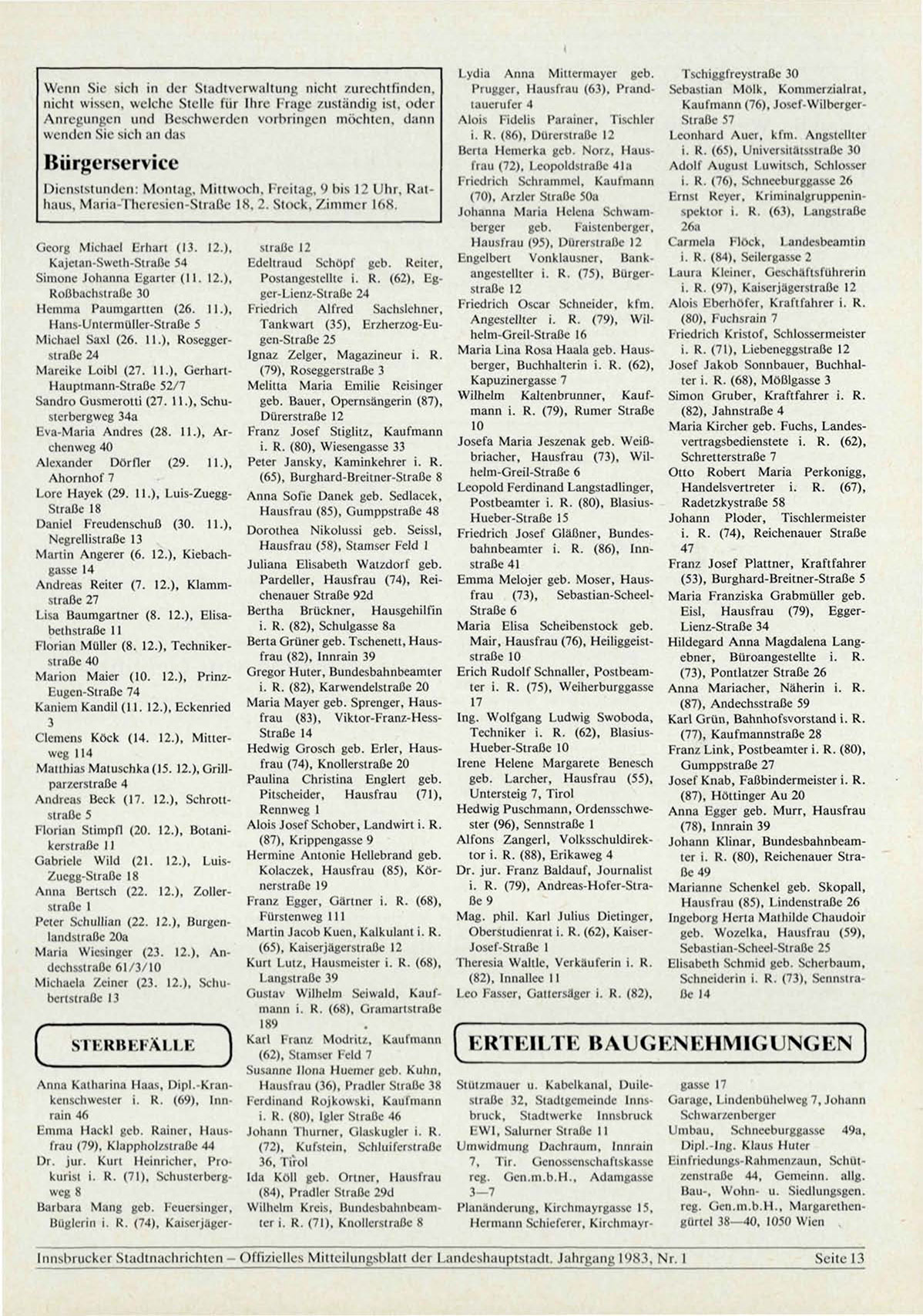 Innsbrucker Stadtnachrichten - Offizielles Mitteilungsblatt der Landeshauptstadt. Jahrgang 1983, Nr. 1