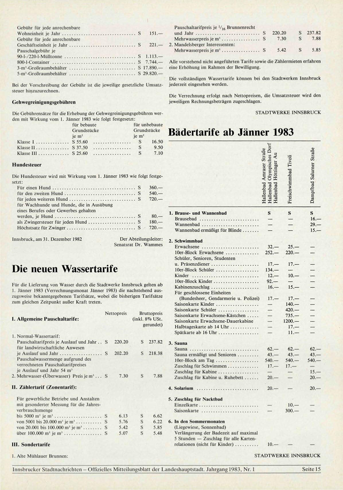 Innsbrucker Stadtnachrichten - Offizielles Mitteilungsblatt der Landeshauptstadt. Jahrgang 1983, Nr.