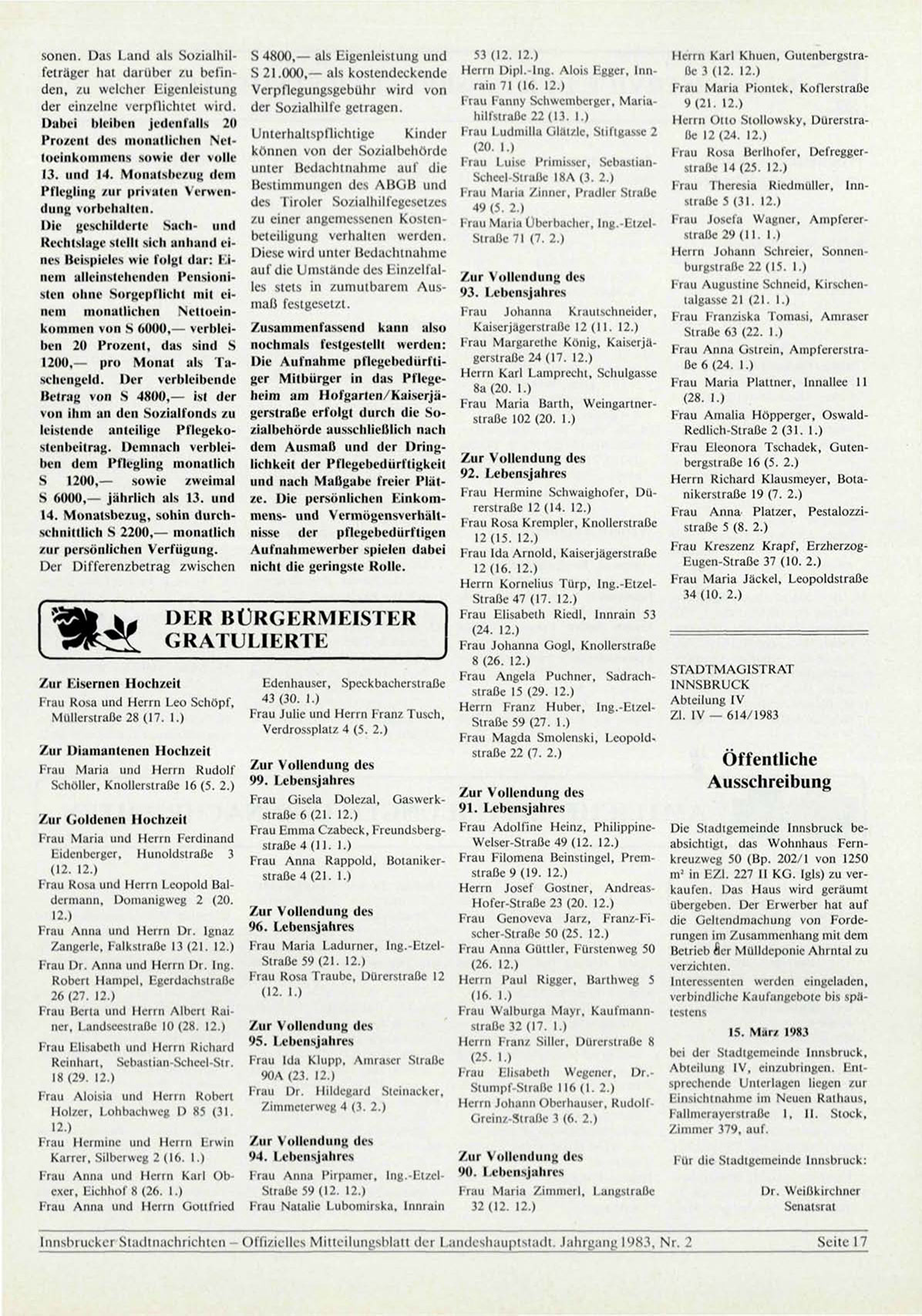 Innsbrucker Stadtnachrichten - Offizielles Mitteilungsblatt der Landeshauptstadt. Jahrgang 1983, Nr. 2