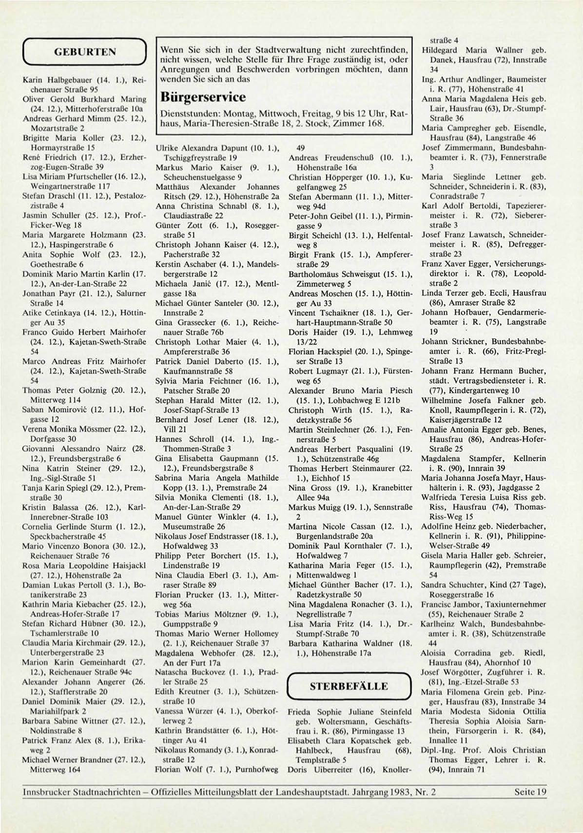 Innsbrucker Stadtnachrichten - Offizielles Mitteilungsblatt der Landeshauptstadt. Jahrgang 1983, Nr. 2