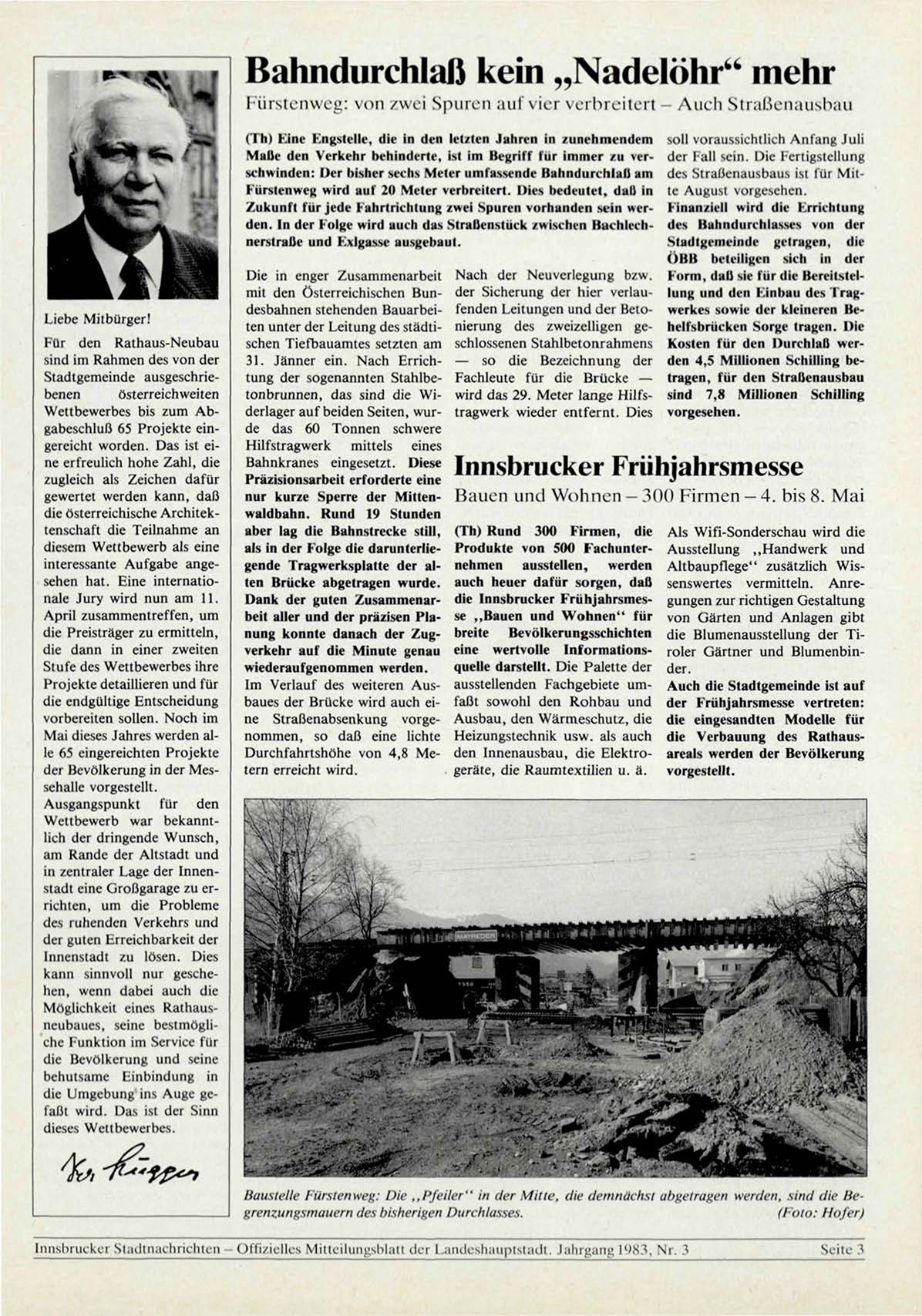 Innsbrucker Stadtnachrichten - Offizielles Mitteilungsblatt der Landeshauptstadt. Jahrgang 1983, Nr. 3