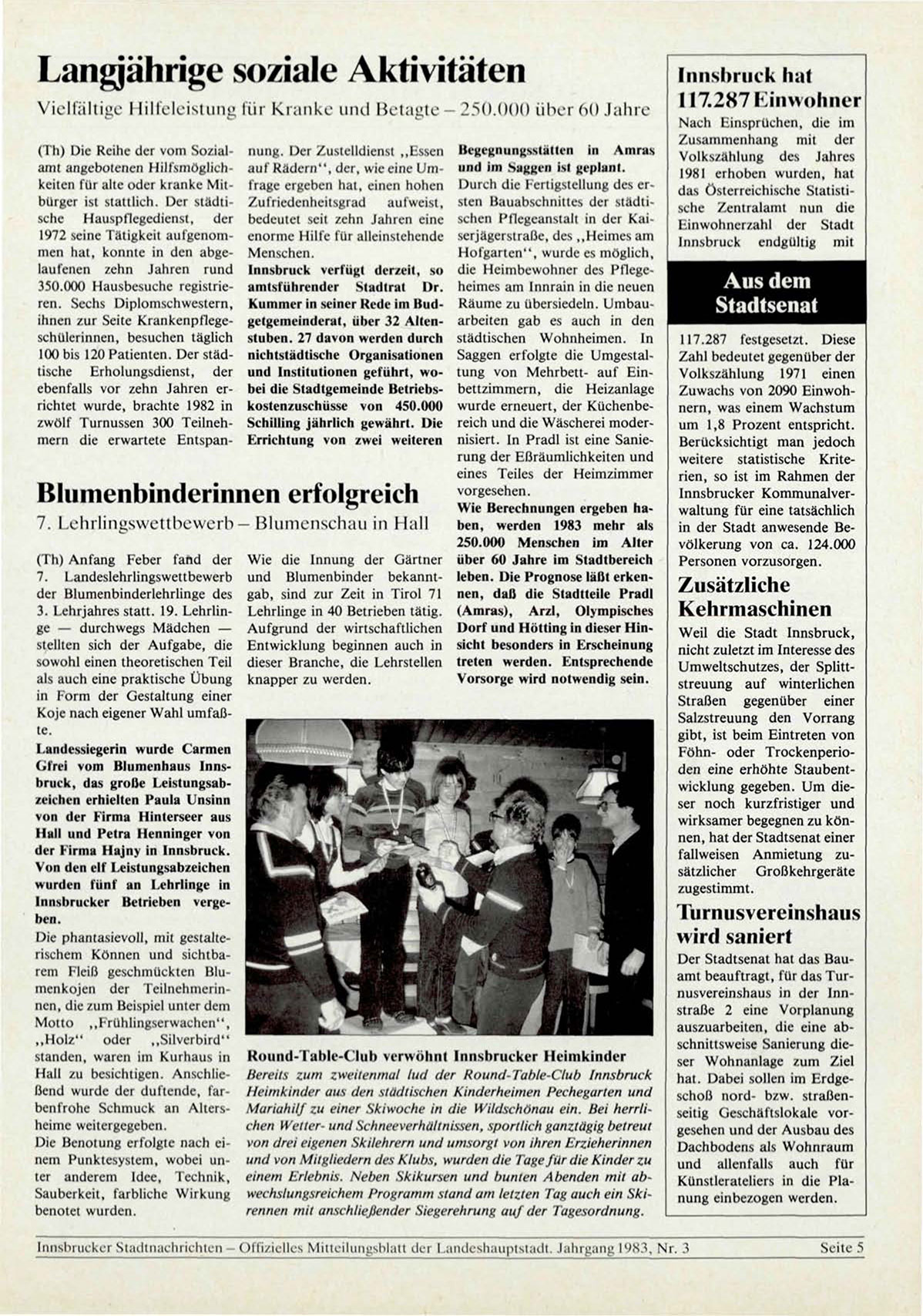 Innsbrucker Stadtnachrichten - Offizielles Mitteilungsblatt der Landeshauptstadt. Jahrgang 1983, Nr. 3