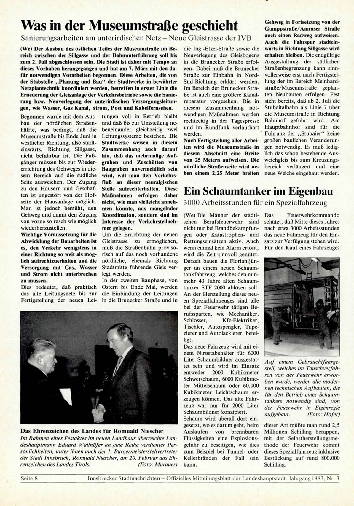 Innsbrucker Stadtnachrichten - Offizielles Mitteilungsblatt der Landeshauptstadt. Jahrgang 19S3, Nr. 3