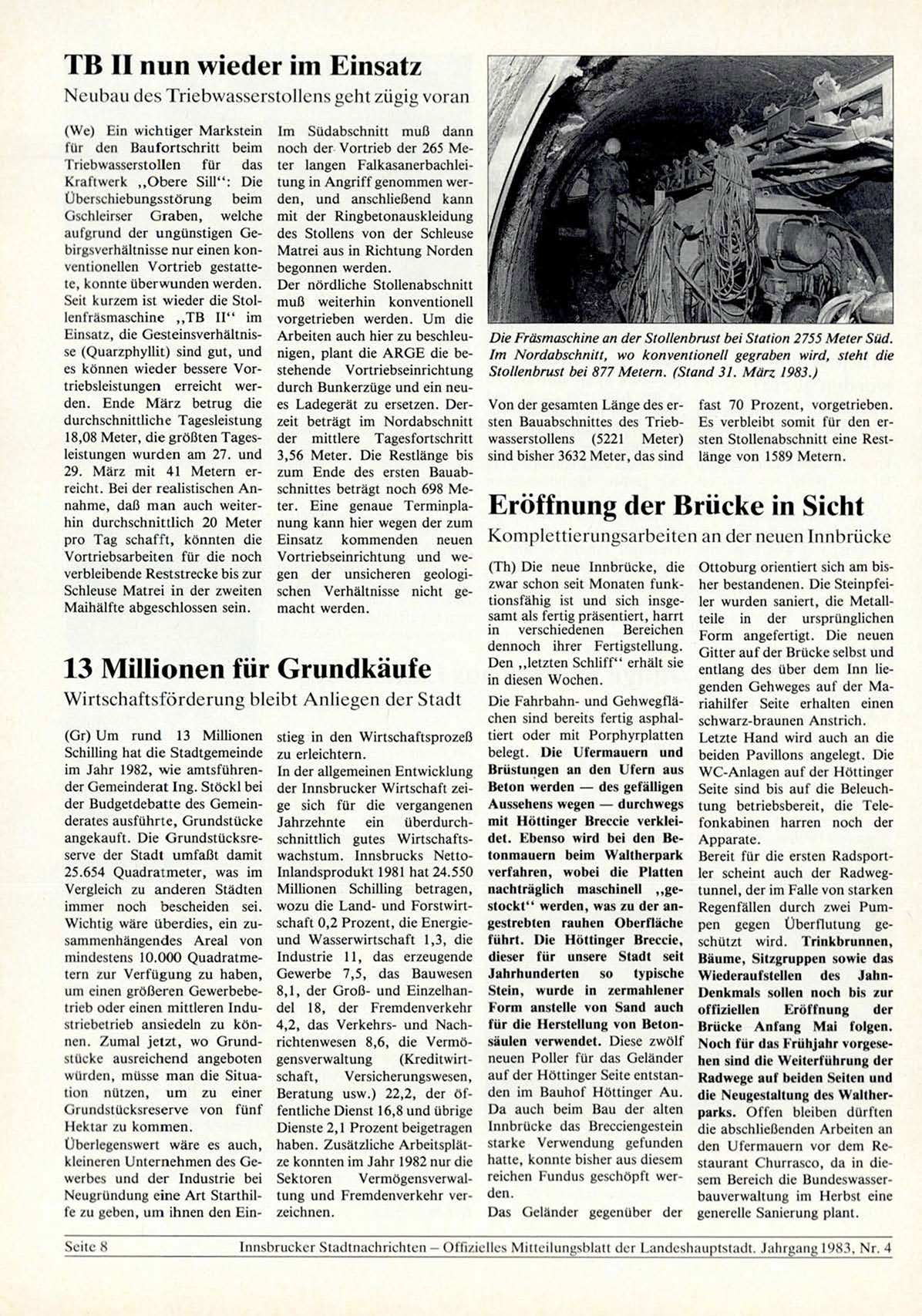 Innsbrucker Stadtnachrichten - O f f i z i e l l e s Mitteilungsblatt der Landeshauptstadt. Jahrgang 1983, N r . 4