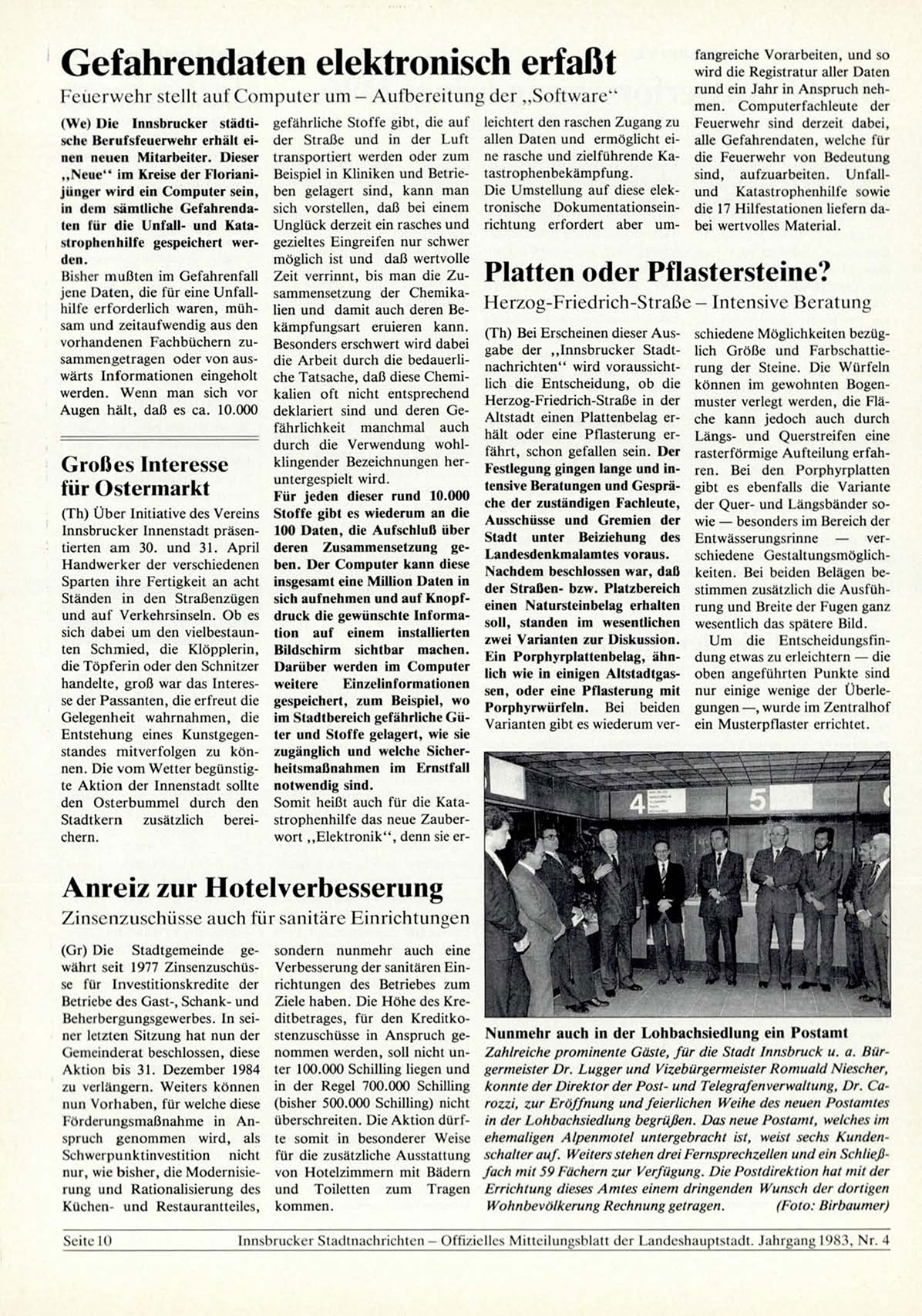 Innsbrucker Stadtnachrichten - Offizielles Mitteilungsblatt der Landeshauptstadt. Jahrgang 1983, Nr. 4
