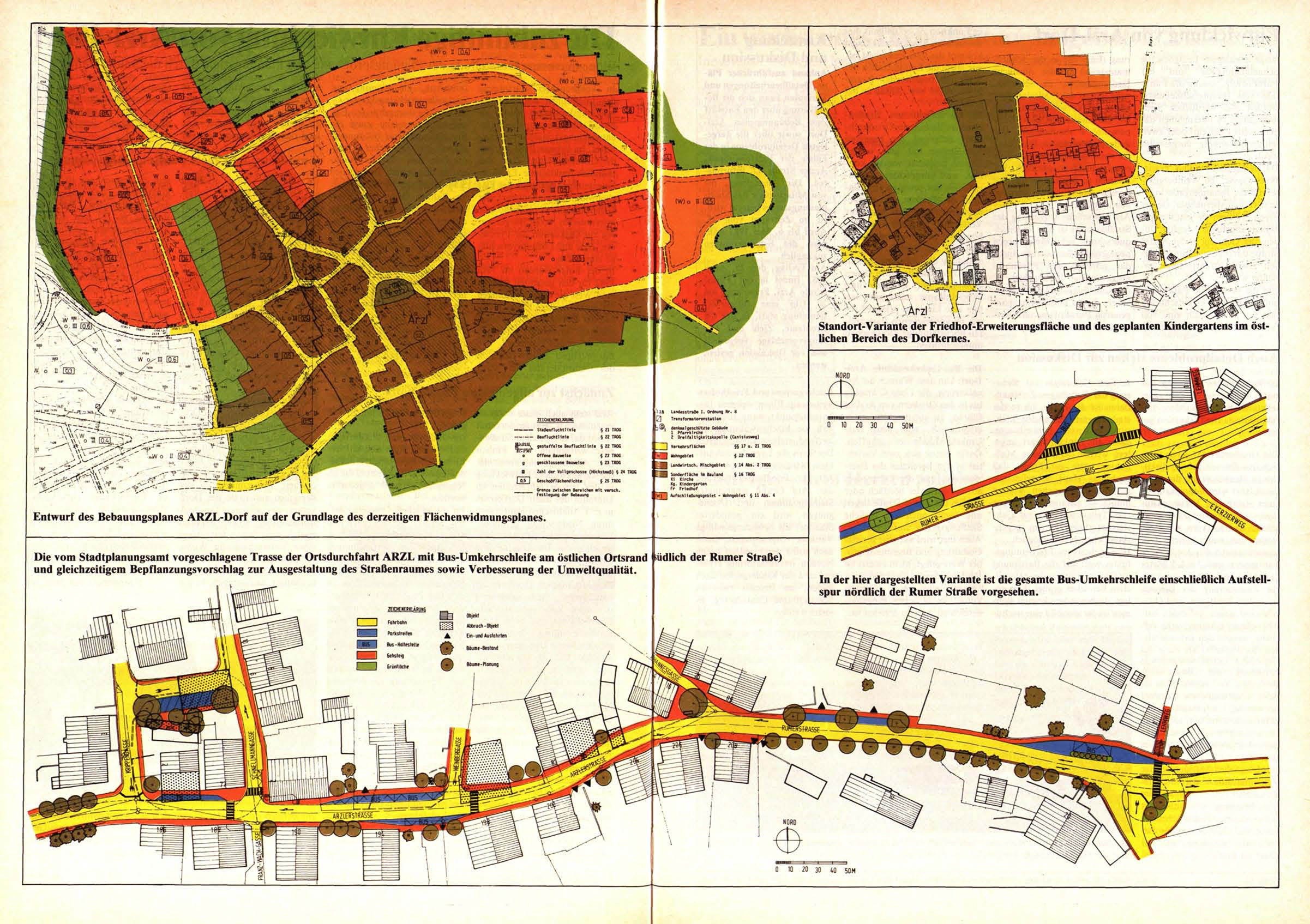 Die vom Stadtplanungsamt vorgeschlagene Trasse der Ortsdurchfahrt ARZL mit Bus-Umkehrschleife am östlichen Ortsrand lüdlich der Rumer Straße)