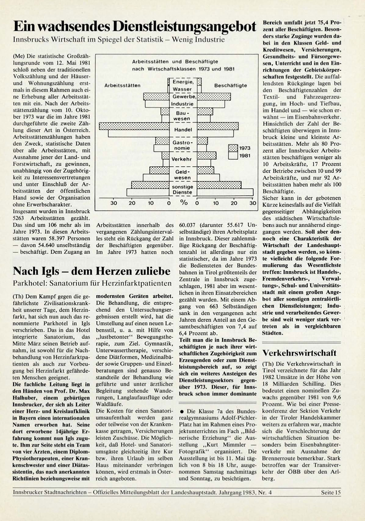 I n n s b r u c k e r S t a d t n a c h r i c h t e n - O f f i z i e l l e s M i t t e i l u n g s b l a t t d e r L a n d e s h a u p t s t a d t . J a h r g a n g 1983, N r . 4