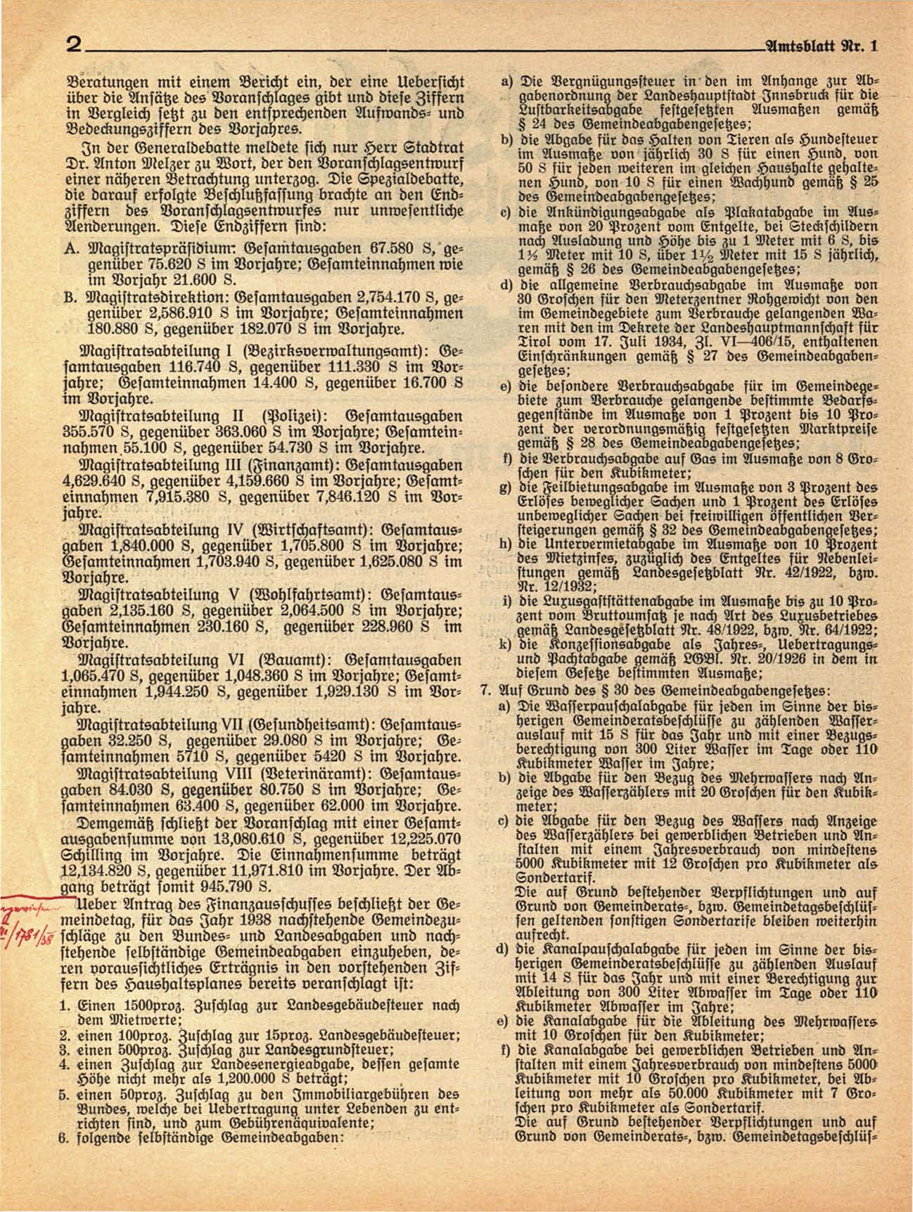 herigen Gemeinderatsbeschlüsse zu zählenden WasserMagistratsabteilung V I I (Gesundheitsamt) : Gesamtausauslauf mit 15 8 für das Jahr und mit einer Bezugsgaben 32.250 8, gegenüber 29.080 8 i m Vorjahre; Geberechtigung