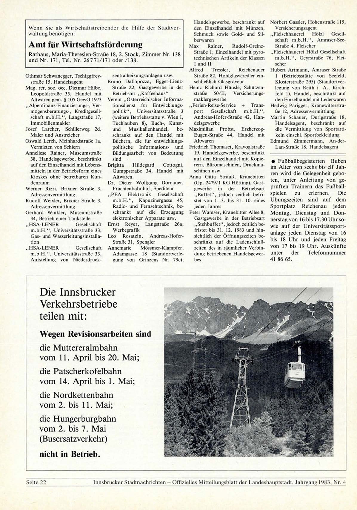 tnnsbnicker Stadtnachrichten - Offizielles Mitteilungsblatt der Landeshauptstadt. Jahrgang L983, Nr. 4