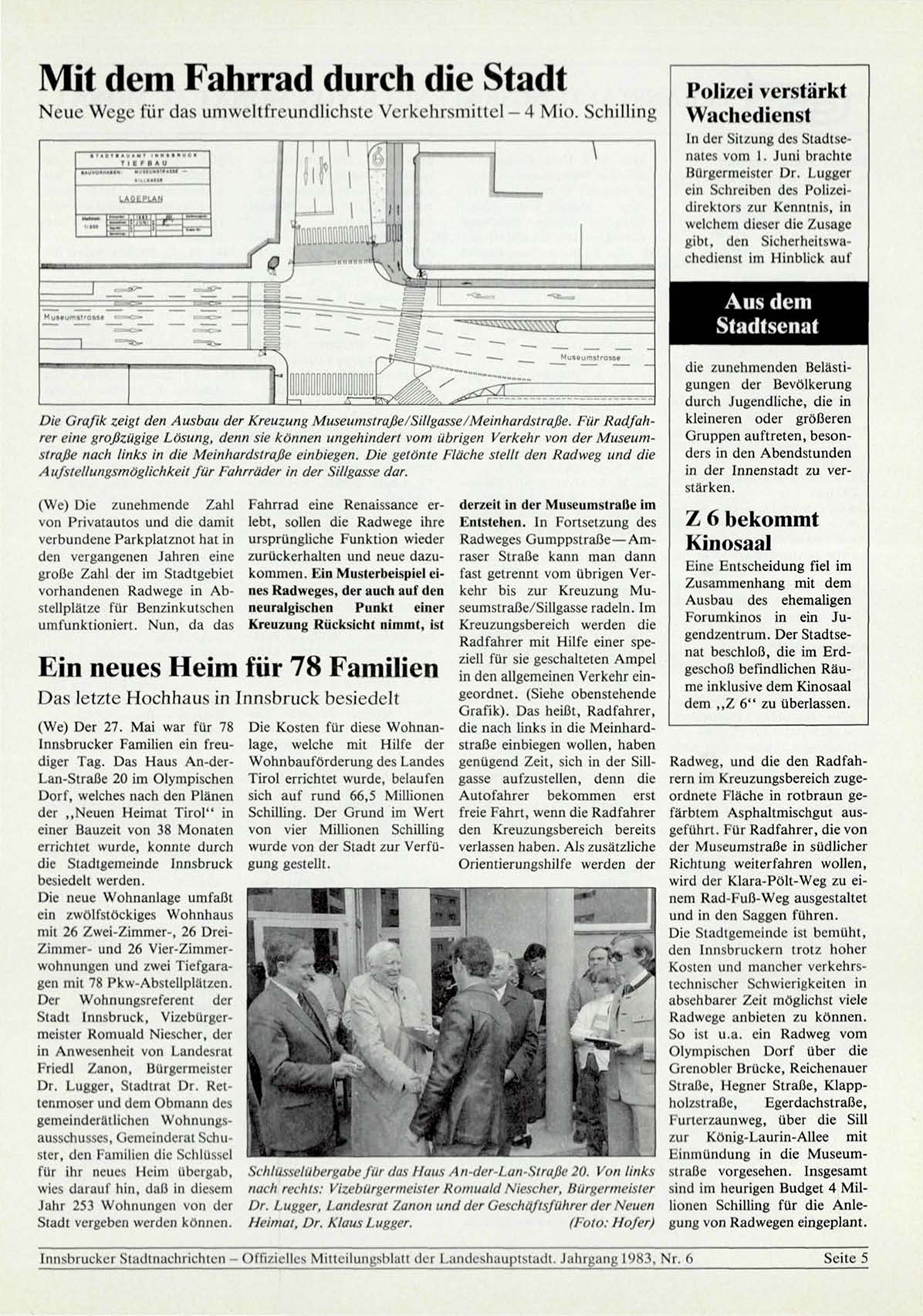 Innsbrucker Stadtnachrichten - Offizielles Mitteilungsblatt der Landeshauptstadt. Jahrgang 1983, Nr. 6