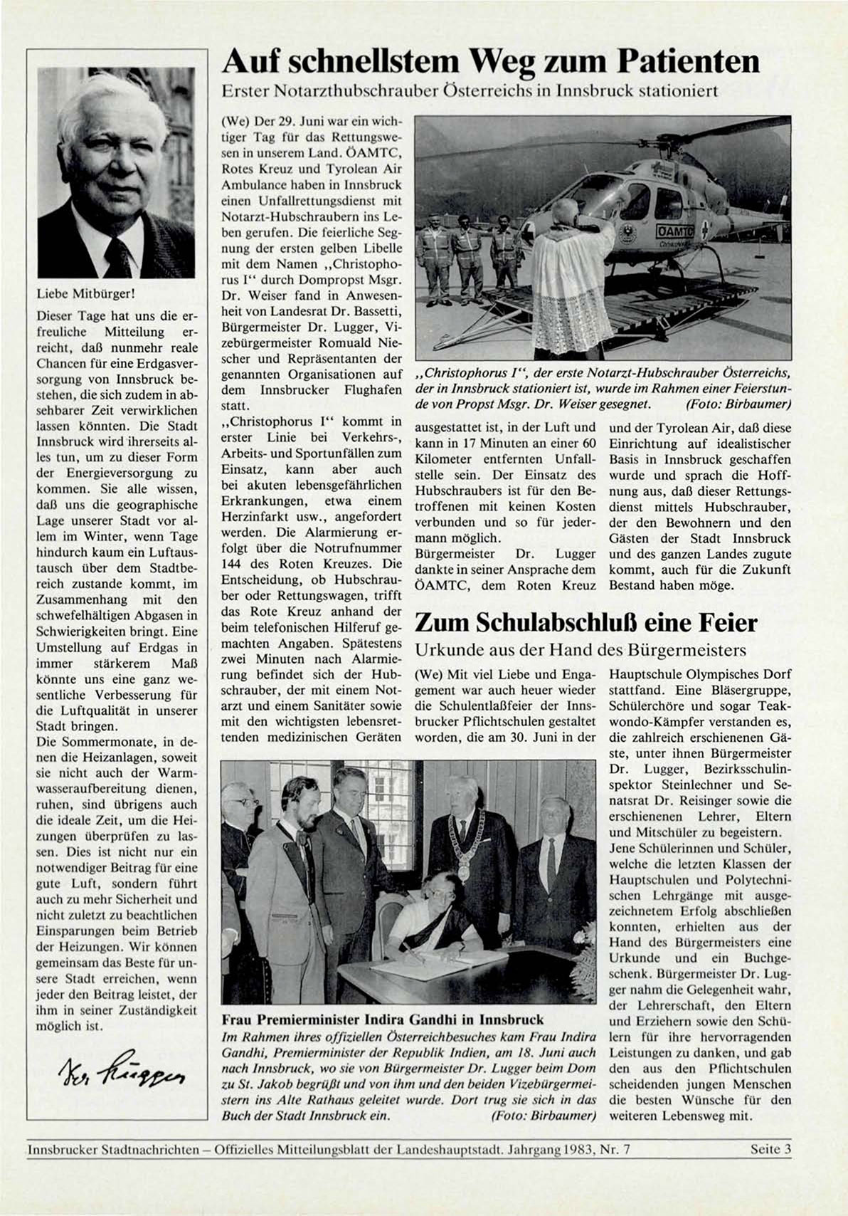 Innsbrucker Stadtnachrichten - Offizielles Mitteilungsblatt der Landeshauptstadt. Jahrgang 1983, Nr. 7