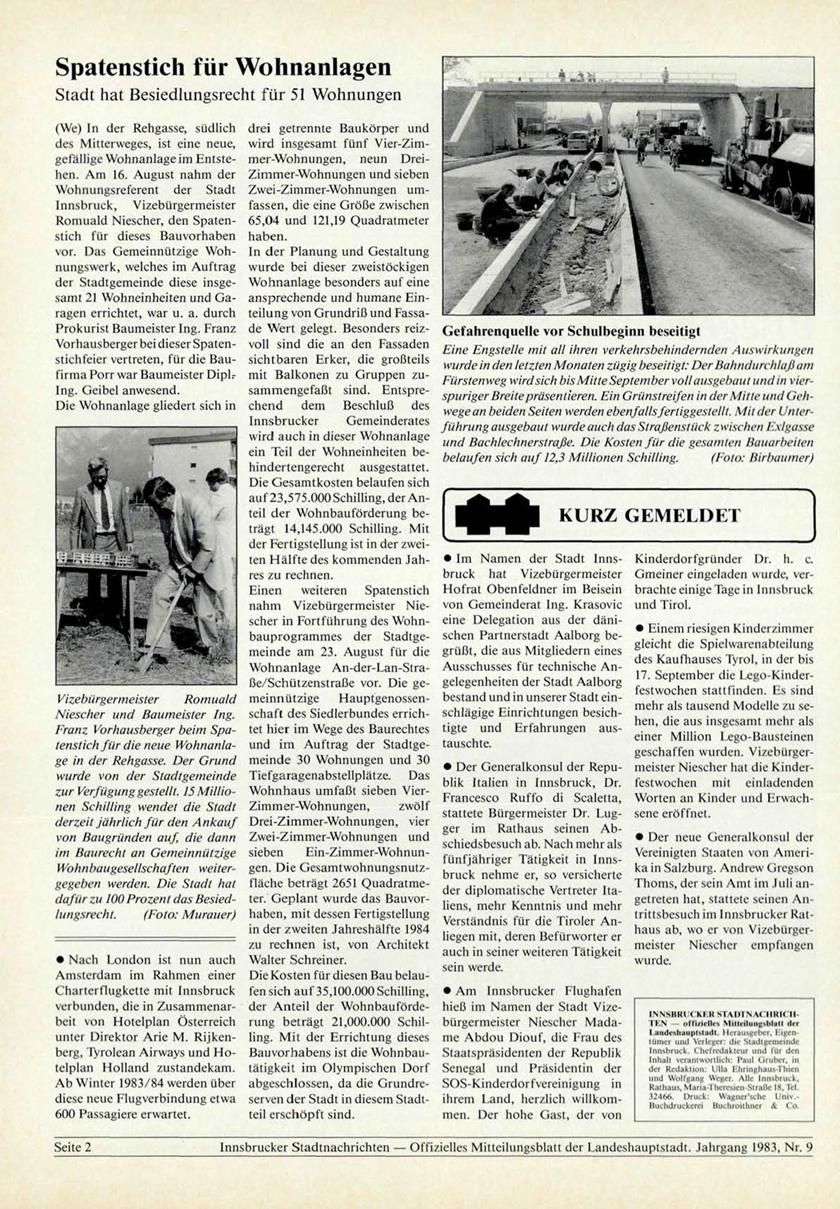 Innsbrucker Stadtnachrichten — Offizielles Mitteilungsblatt der Landeshauptstadt. Jahrgang 1983, Nr. 9