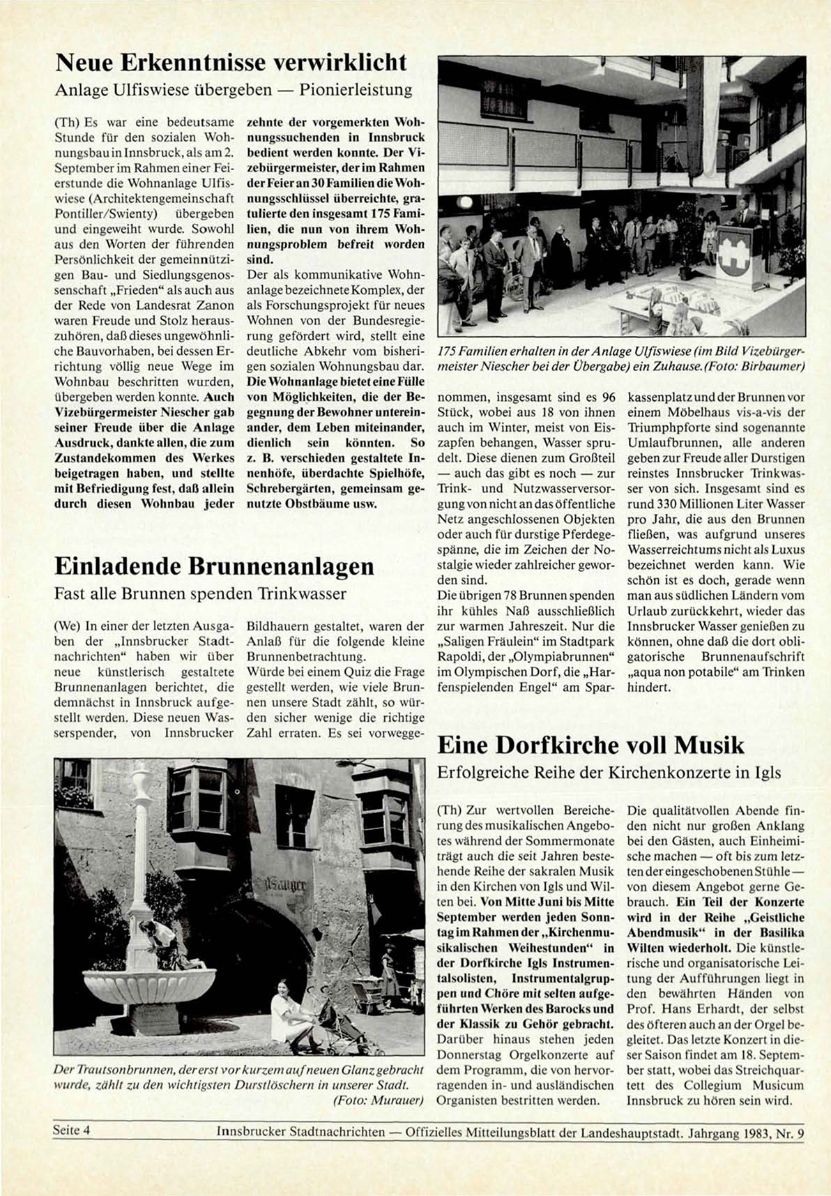 Innsbrucker Stadtnachrichten — Offizielles Mitteilungsblatt der Landeshauptstadt. Jahrgang 1983, Nr. 9