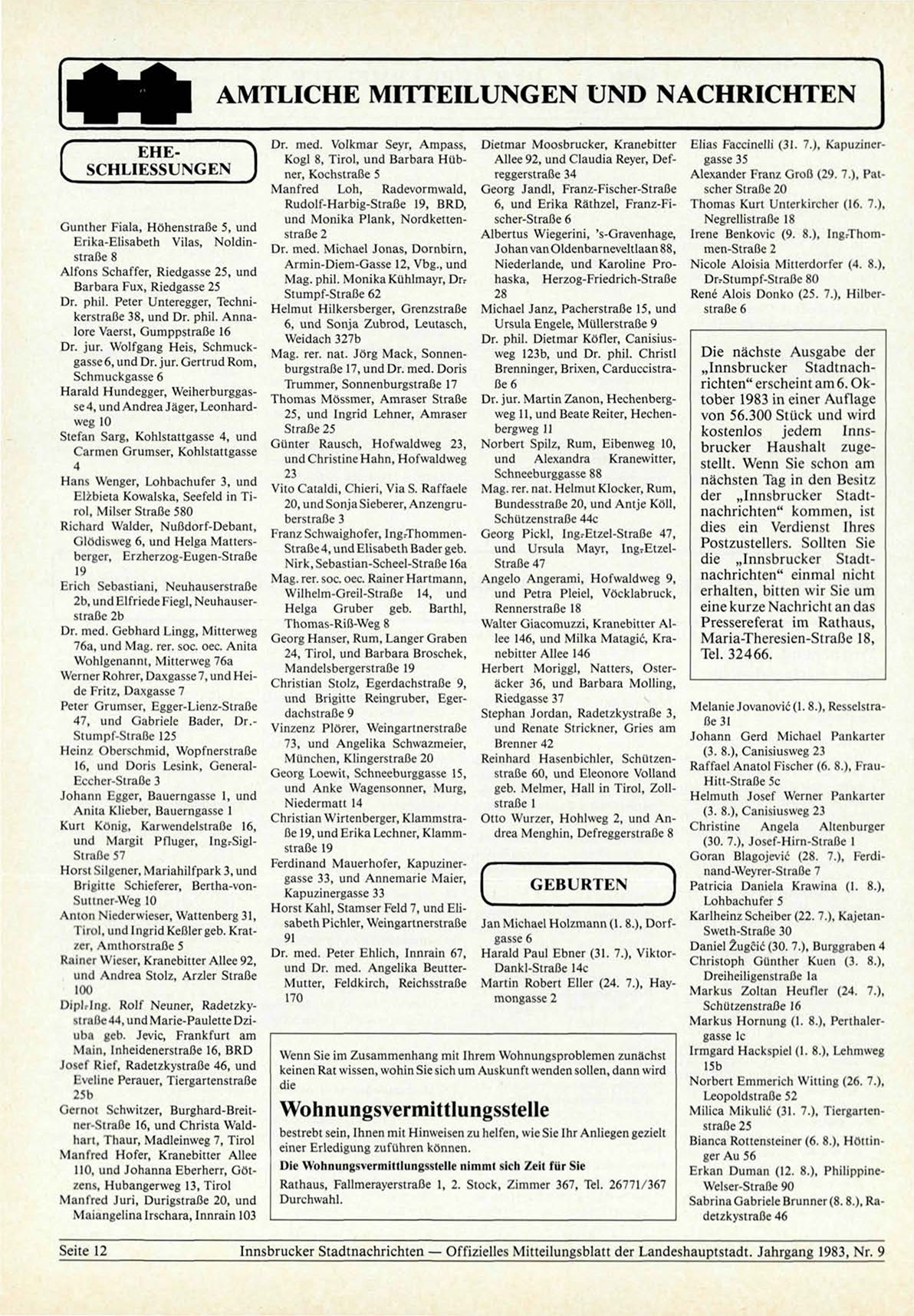 Innsbrucker Stadtnachrichten — Offizielles Mitteilungsblatt der Landeshauptstadt. Jahrgang 1983, Nr. 9