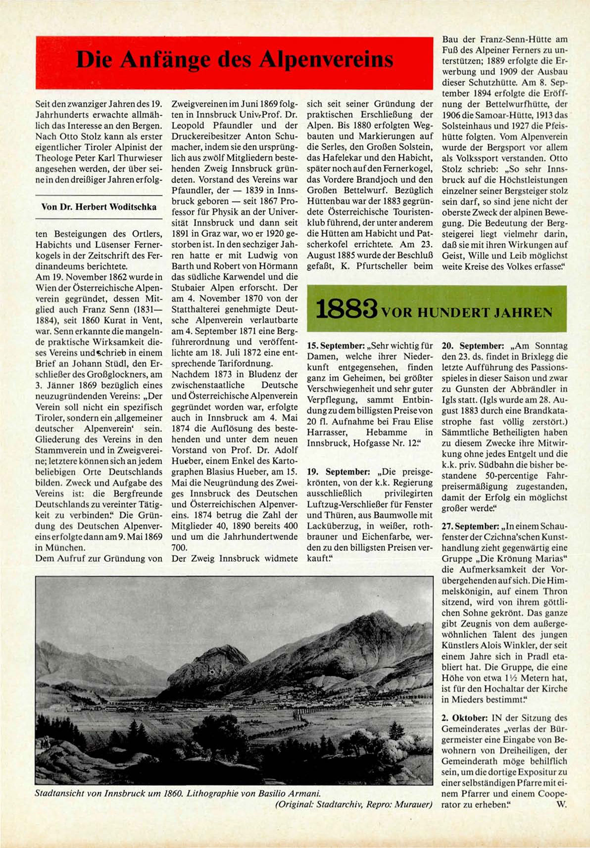Seit den zwanziger Jahren des 19. Zweigvereinen im Juni 1869 folgJahrhunderts erwachte allmäh- ten in Innsbruck UnivrProf. Dr.