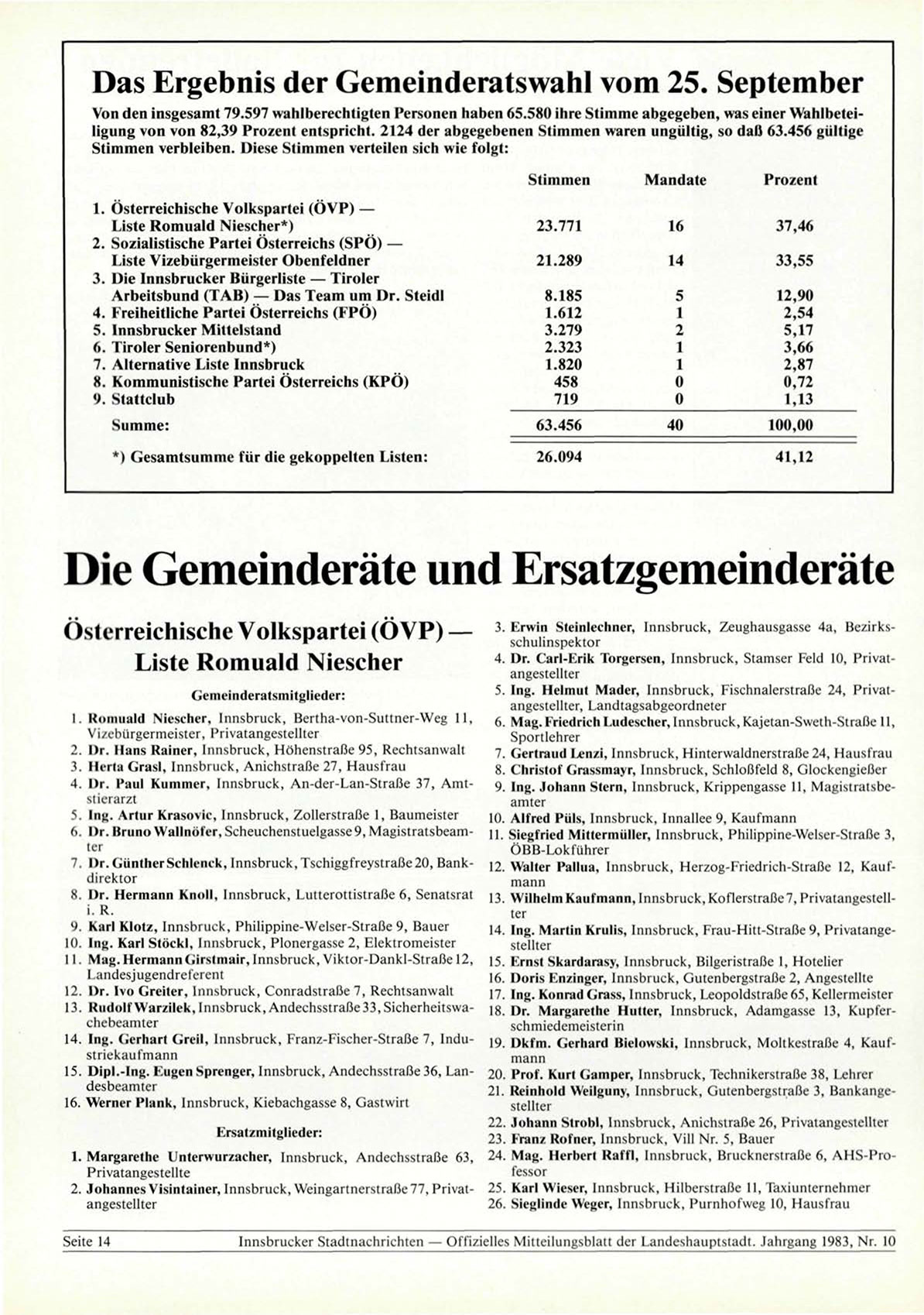 5. Ing. Helmut Mader, Innsbruck, Fischnalerstraße 24, PrivatGemeinderatsmitglieder: