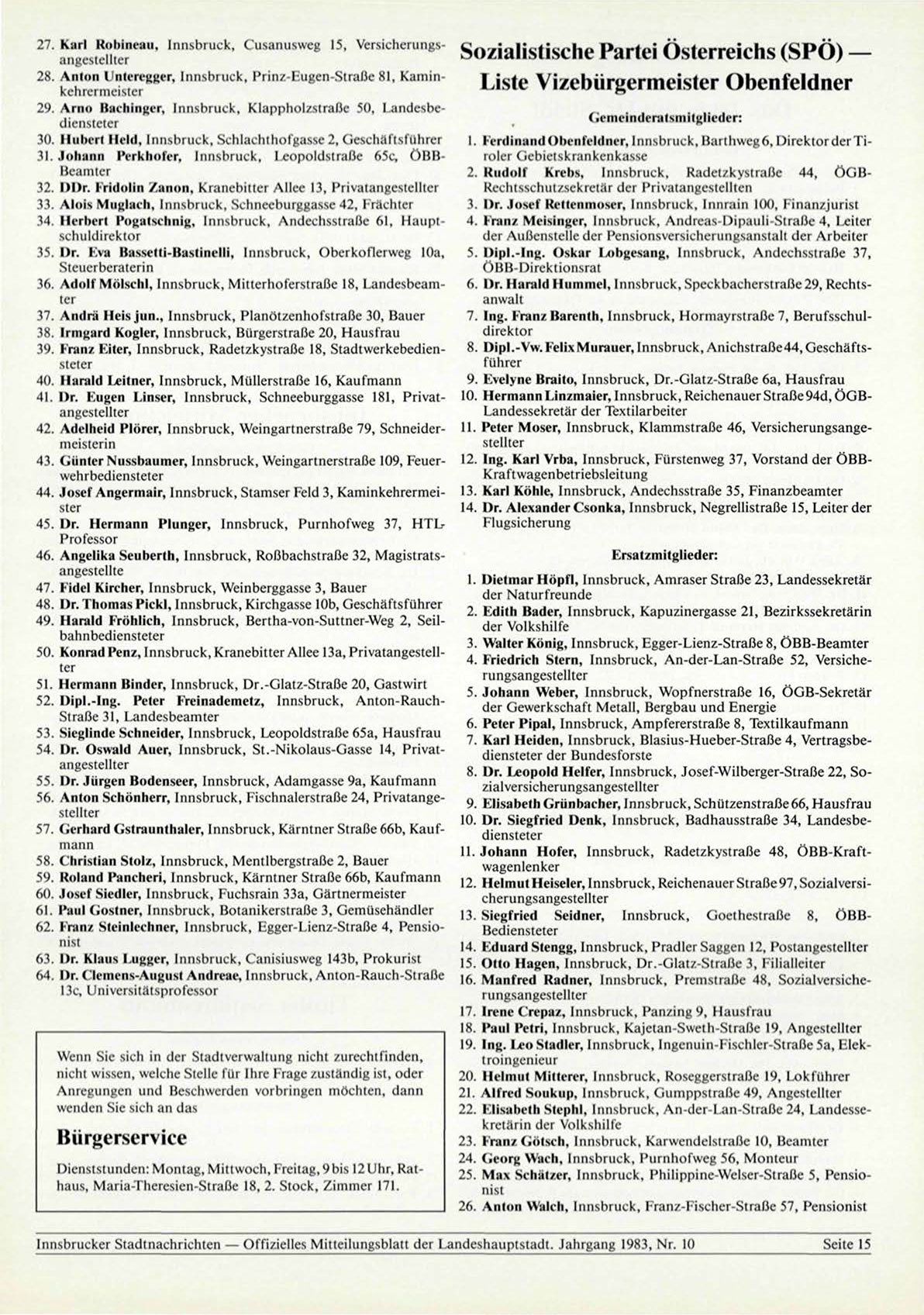 Innsbrucker Stadtnachrichten — Offizielles Mitteilungsblatt der Landeshauptstadt. Jahrgang 1983, Nr. 10