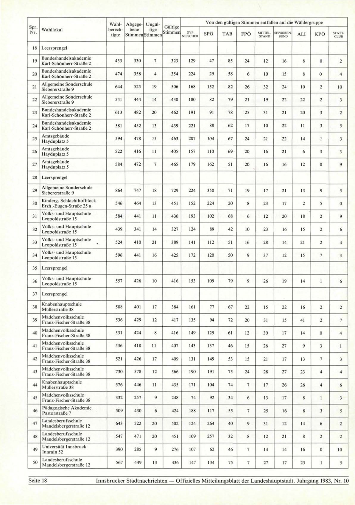 Innsbrucker Stadtnachrichten — Offizielles Mitteilungsblatt der Landeshauptstadt. Jahrgang 1983, Nr. 10