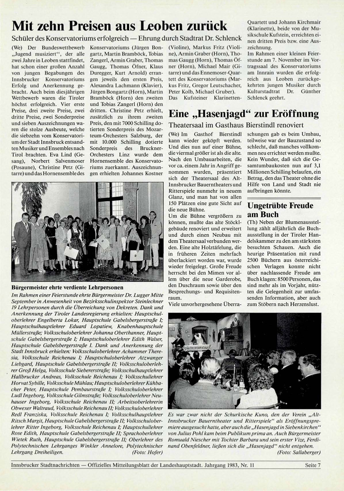 Innsbrucker Stadtnachrichten — Offizielles Mitteilungsblatt der Landeshauptstadt. Jahrgang 1983, Nr. 11