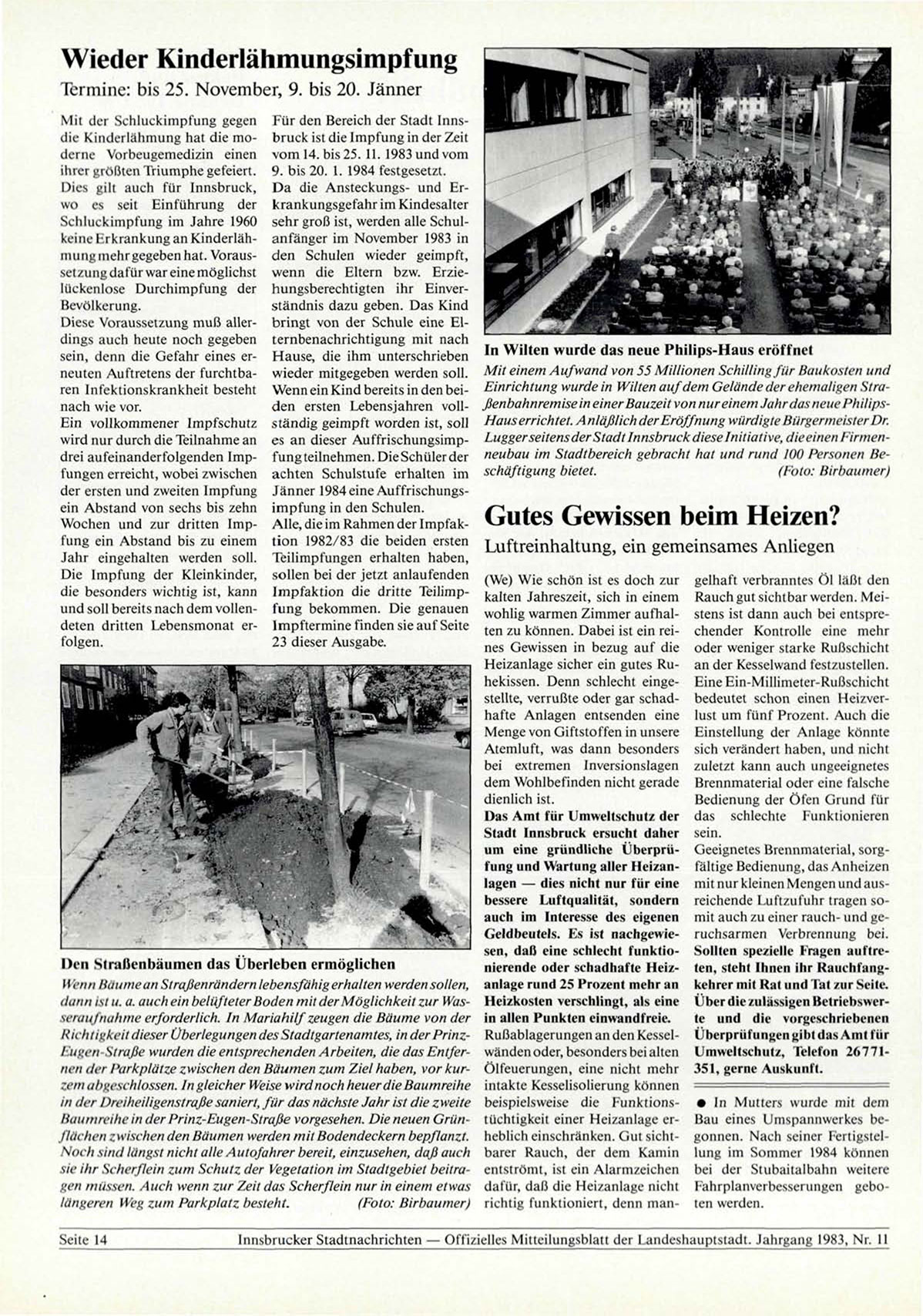 Innsbrucker Stadtnachrichten — Offizielles Mitteilungsblatt der Landeshauptstadt. Jahrgang 1983, Nr. 11
