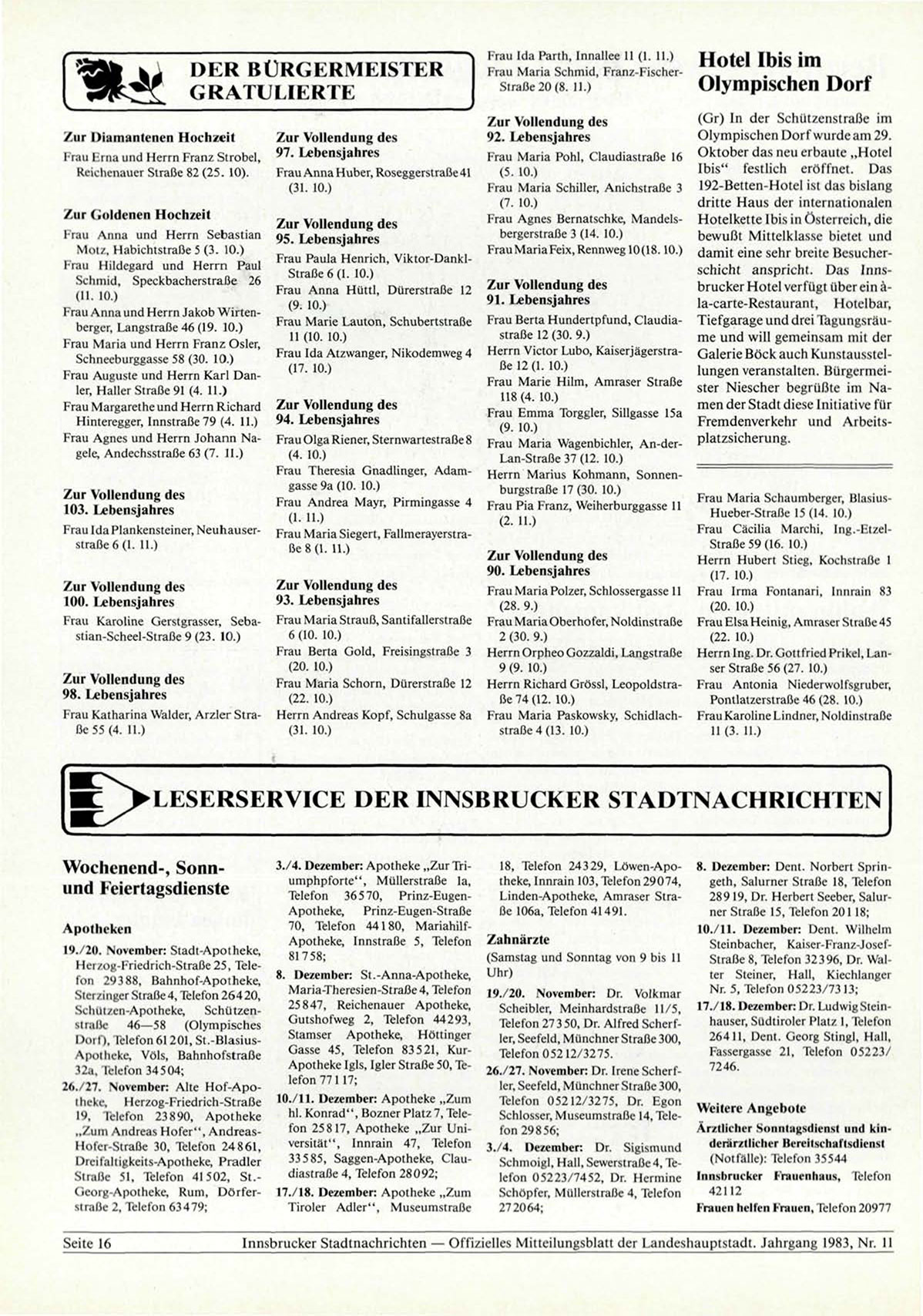Innsbrucker Stadtnachrichten — Offizielles Mitteilungsblatt der Landeshauptstadt. Jahrgang 1983, Nr. 11