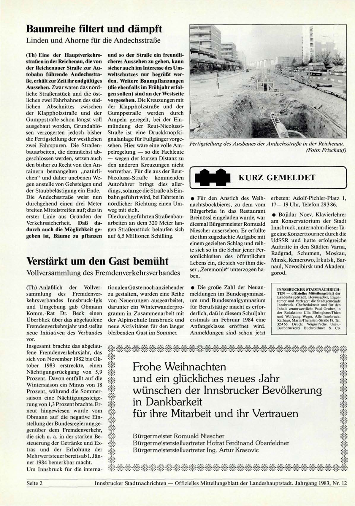 Innsbrucker Stadtnachrichten — Offizielles Mitteilungsblatt der Landeshauptstadt. Jahrgang 1983, Nr. 12