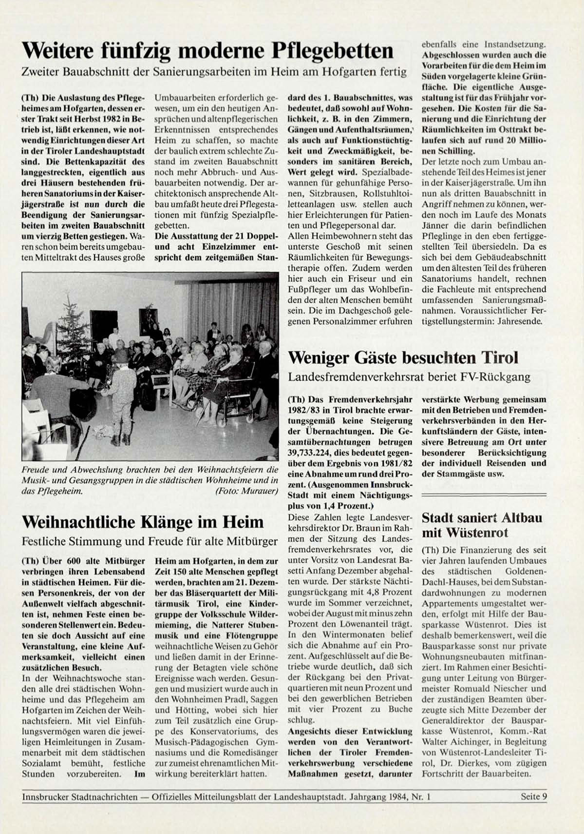 Innsbrucker Stadtnachrichten — Offizielles Mitteilungsblatt der Landeshauptstadt. Jahrgang 1984, Nr. 1
