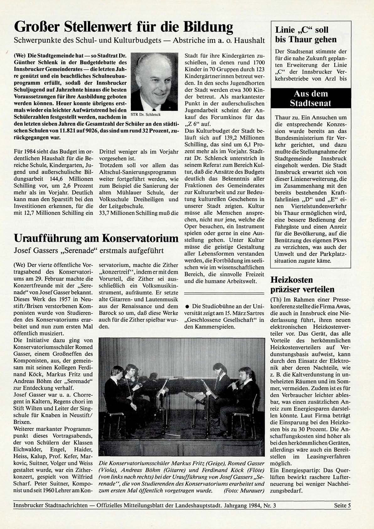 Innsbrucker Stadtnachrichten — Offizielles Mitteilungsblatt der Landeshauptstadt. Jahrgang 1984, Nr. 3
