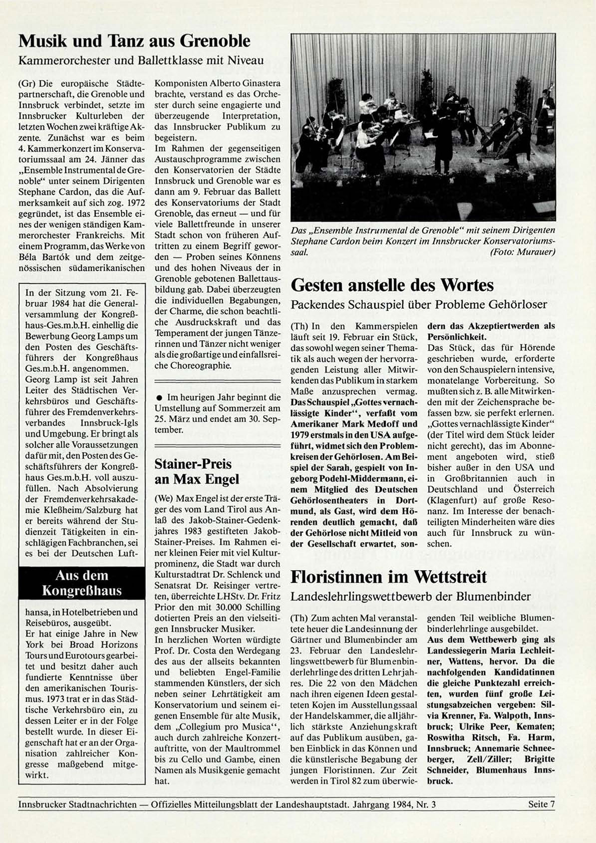 Innsbrucker Stadtnachrichten — Offizielles Mitteilungsblatt der Landeshauptstadt. Jahrgang 1984, Nr. 3