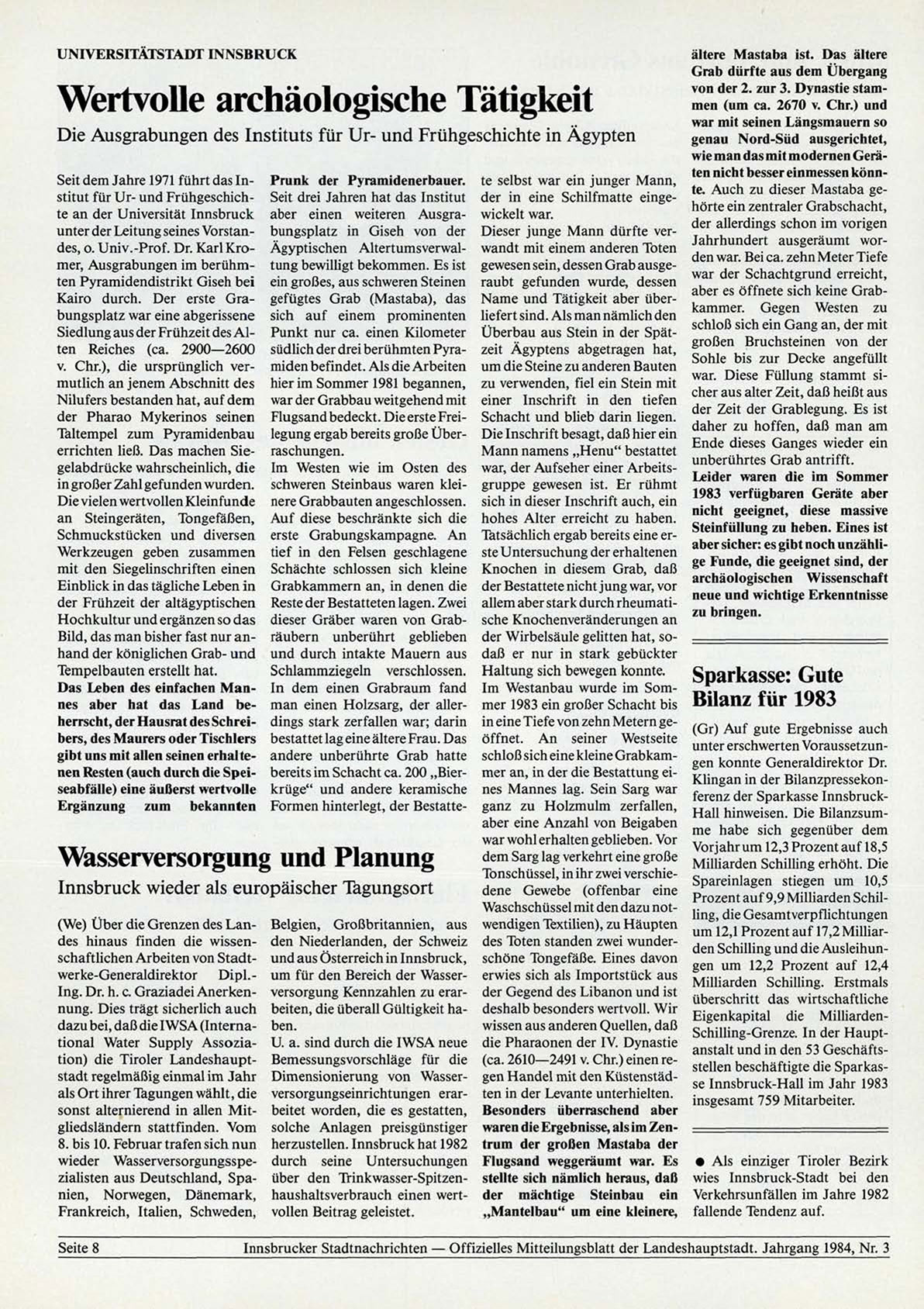 Innsbrucker Stadtnachrichten — Offizielles Mitteilungsblatt der Landeshauptstadt. Jahrgang 1984, Nr. 3