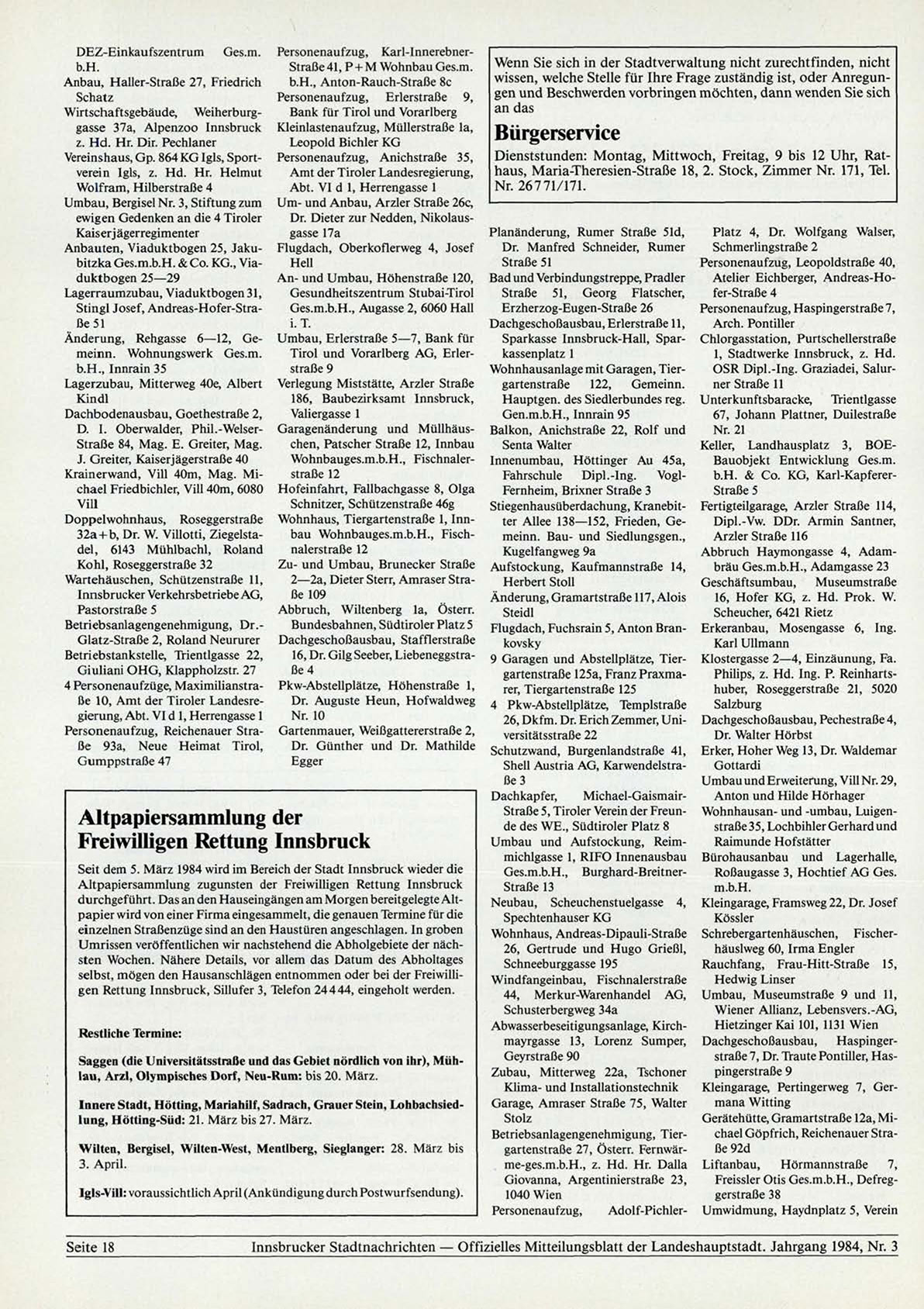 Innsbrucker Stadtnachrichten — Offizielles Mitteilungsblatt der Landeshauptstadt. Jahrgang 1984, Nr. 3