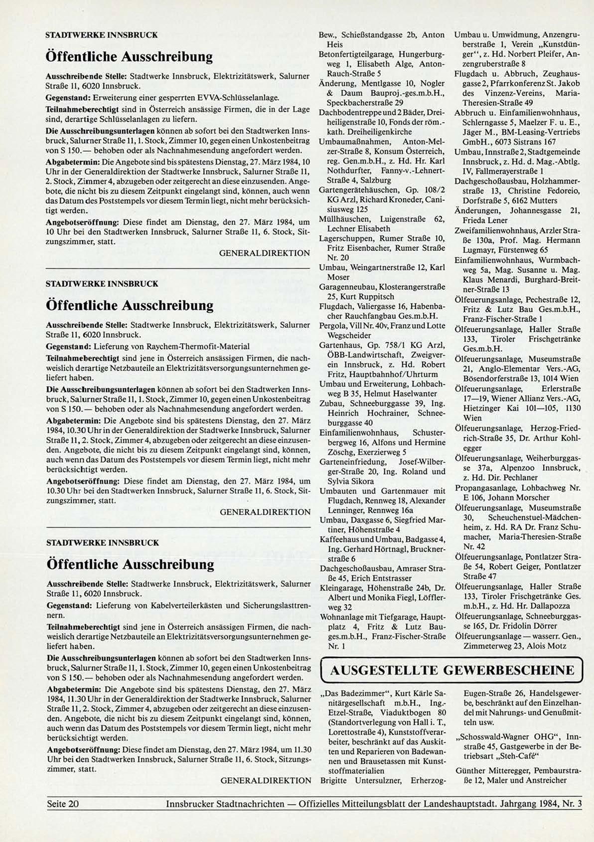 Innsbrucker Stadtnachrichten — Offizielles Mitteilungsblatt der Landeshauptstadt. Jahrgang 1984, Nr. 3