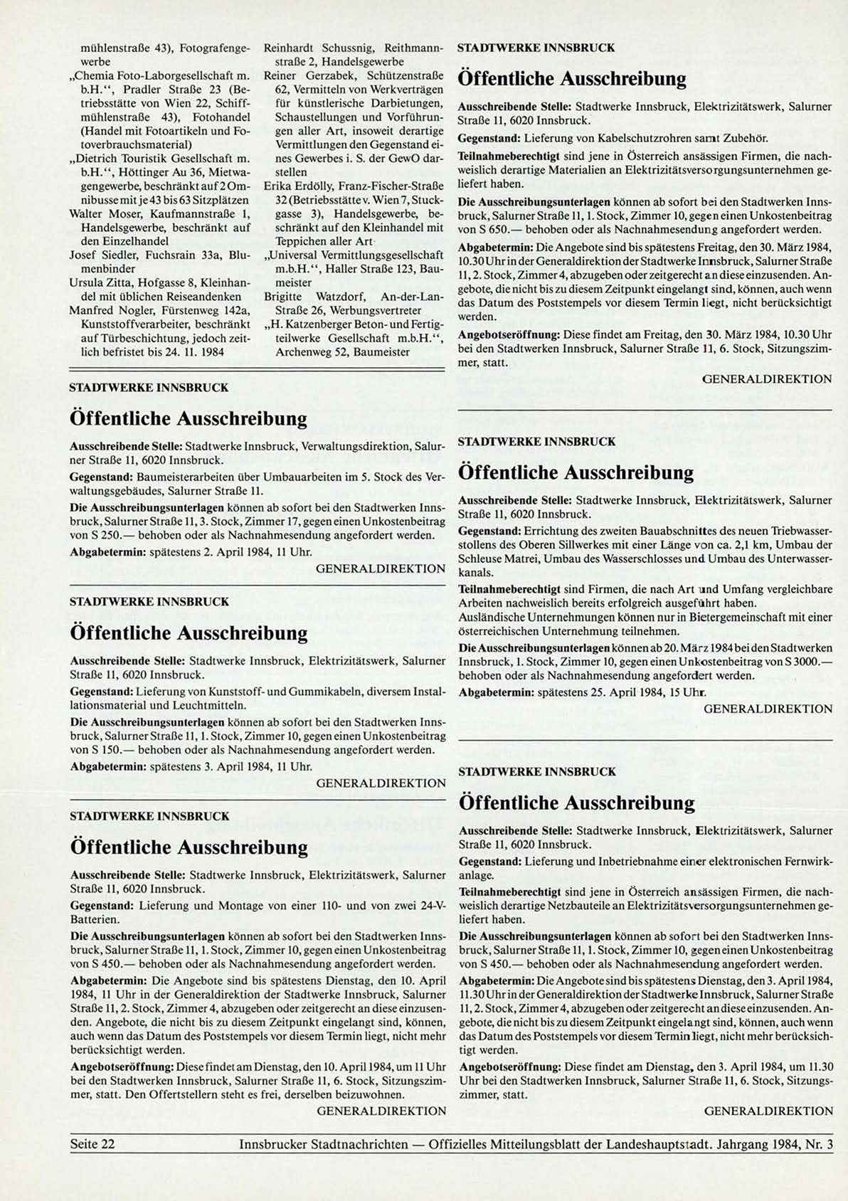 Innsbrucker Stadtnachrichten — Offizielles Mitteilungsblatt der Landeshauptstadt. Jahrgang 1984, Nr. 3