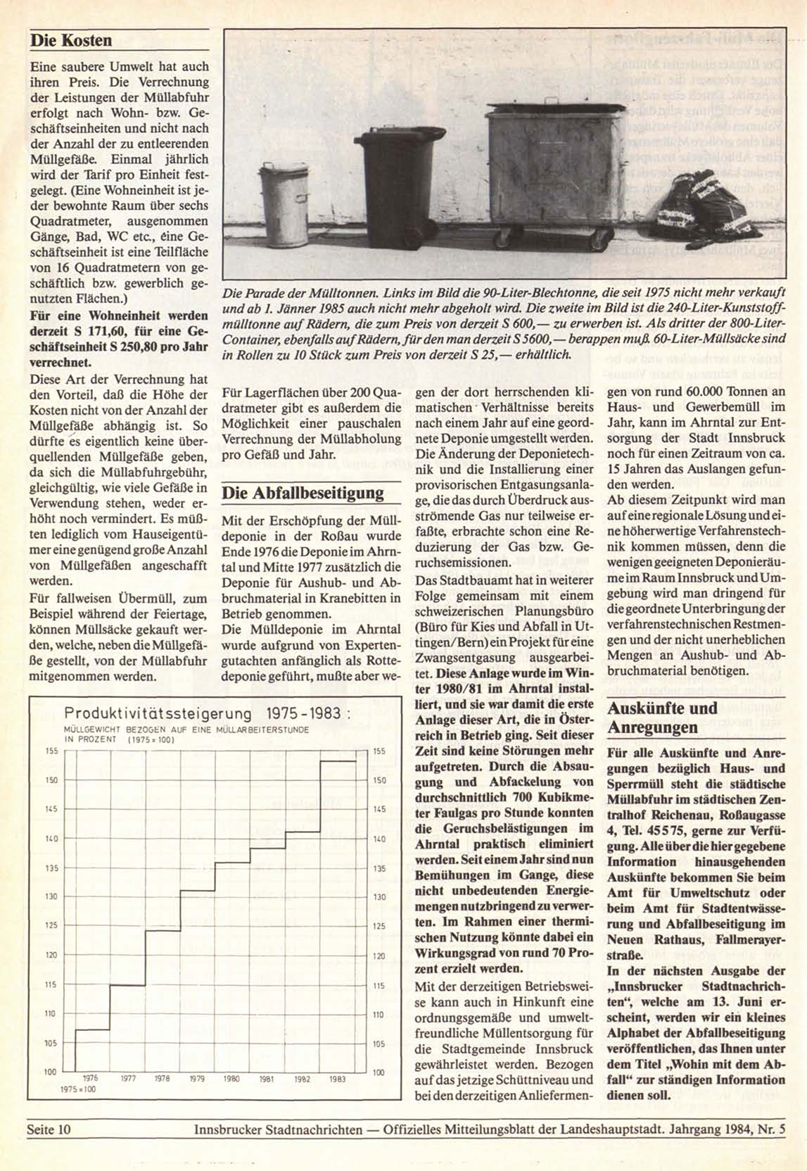 Innsbrucker Stadtnachrichten — Offizielles Mitteilungsblatt der Landeshauptstadt. Jahrgang 1984, Nr. 5