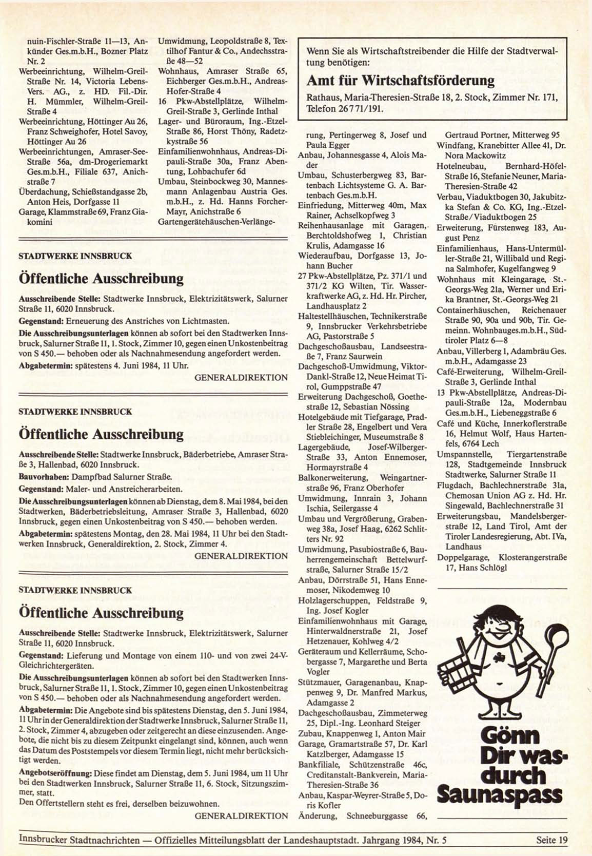 Innsbrucker Stadtnachrichten — Offizielles Mitteilungsblatt der Landeshauptstadt. Jahrgang 1984, Nr. 5