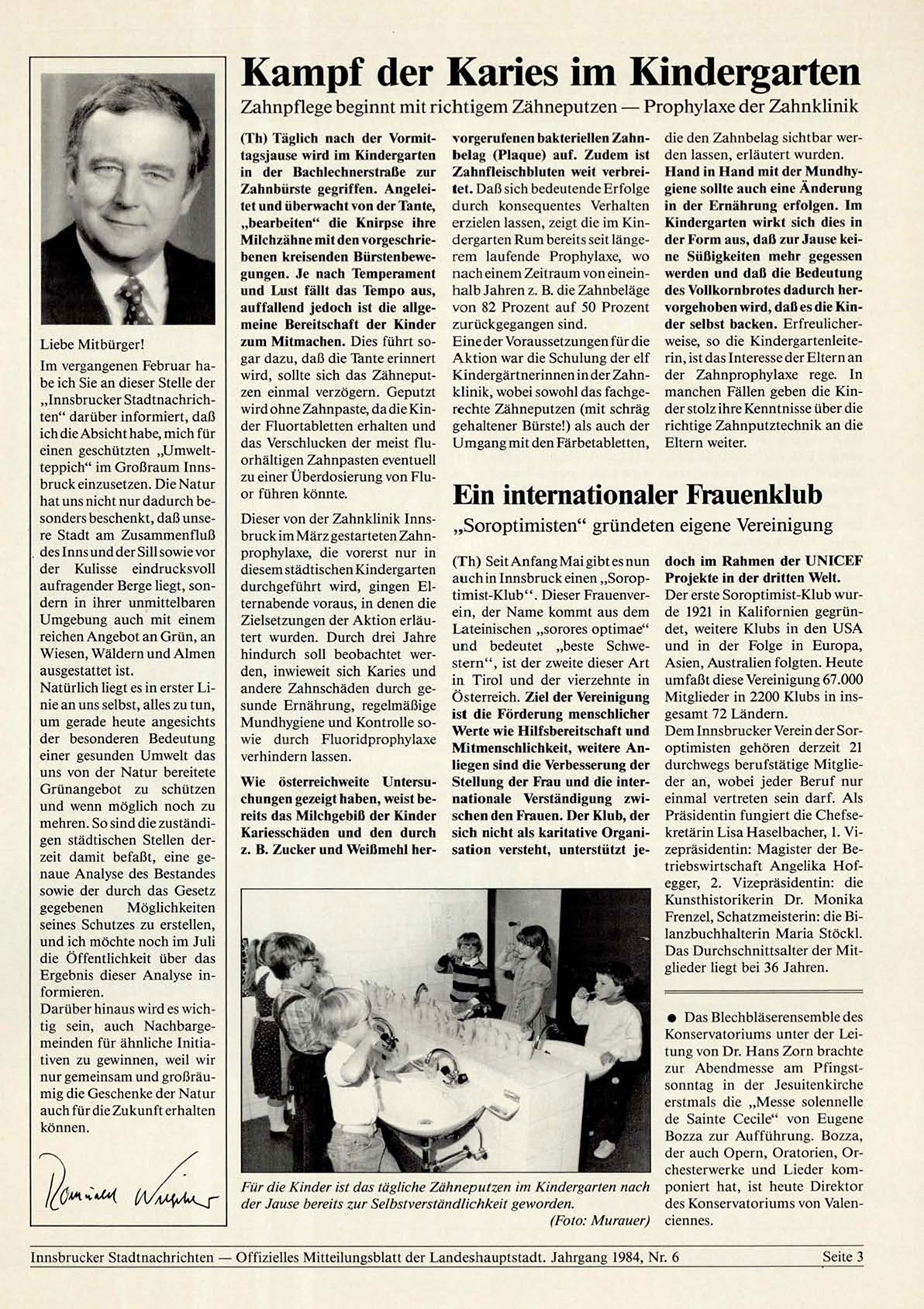 Innsbrucker Stadtnachrichten — Offizielles Mitteilungsblatt der Landeshauptstadt. Jahrgang 1984, Nr. 6