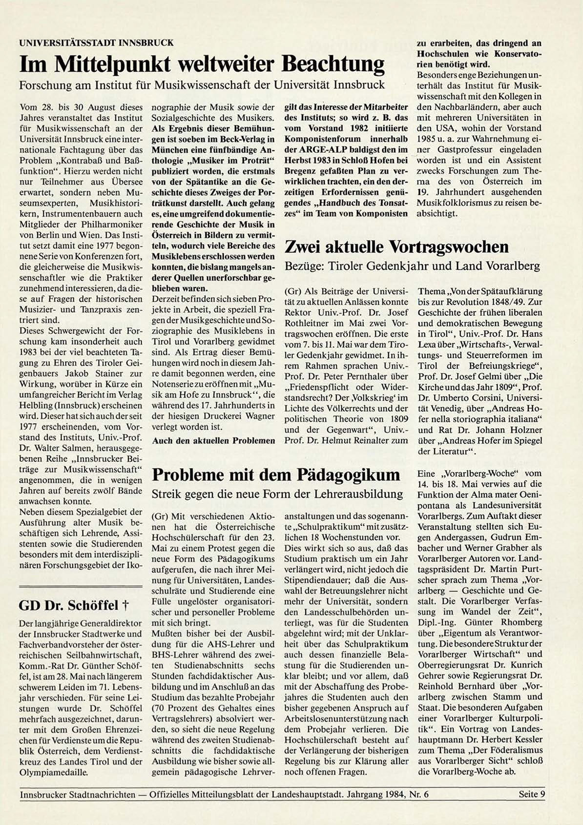 die gleicherweise die Musikwis- konnten, die bislang mangels an- Bezüge: Tiroler Gedenkjahr und Land Vorarlberg